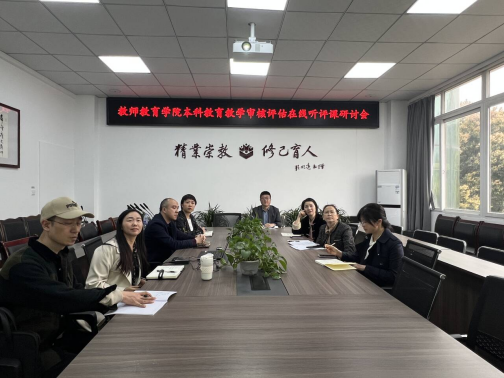 为扎实推进本科教育教学审核评估工作,深化课堂教学改革,提升师范生科研能力培养质量,万象城体育awcsport于2025年3月27日15:25在博文楼206A会议室组织开展本科教育教学审核评估在线听评课研讨会。本次研讨会以《教育科学研究方法》课程中“开题报告撰写”教学单元为研讨案例,通过线上直播授课、专家实时评课的形式展开,学院院长黄培森、党委副书记王文娟、副院长赵栅凌、各专业教研室主任参加本次研讨会议。