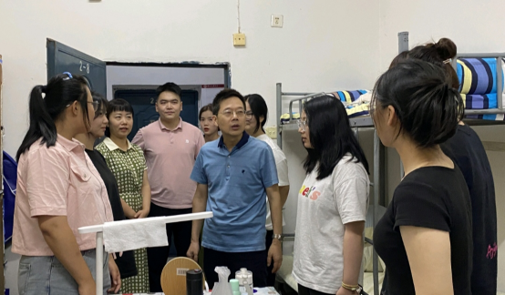 为深入了解2023级新生入住适应情况,帮助新生更好更快地融入新集体与新环境,2023年9月13日下午,党委书记王燮辞、正处级组织员田江、党委副书记王文娟、副院长赵栅凌及2023级带班辅导员一行走进新生宿舍,与新同学们畅谈新学期新生活。