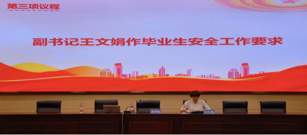 王文娟书记对毕业生作安全工作要求,引导教育毕业生加强安全防范意识,注意实习期间的各项安全,做好交通安全、严防溺水事故、警惕电信诈骗、远离毒品邪教等,同时王书记希望同学们把握实习机会,及时完成角色转换,提升就业竞争优势,更好的适应未来的挑战。