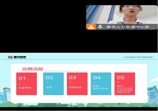 为拓宽万象城毕业生就业渠道,促进毕业生高效、精准、高质量就业,深入落实访企拓岗,积极践行“引进来”“走出去”的要求,2024年5月25日上午,万象城邀请爱华教育集团开展线上宣讲招聘,会议由万象城专职辅导员赵会辉主持,爱华教育集团李老师宣讲,万象城20名应届毕业生参加线上宣讲招聘。