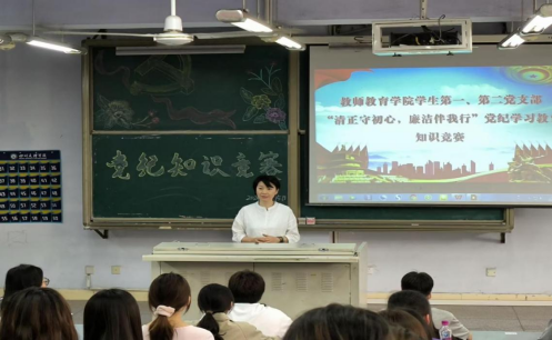 为深入学习贯彻《中国共产党纪律处分条例》,教育引导广大党员同志自觉主动学纪、知纪、明纪、守纪,全面落实从严治党要求,努力把纪律规矩转化为政治自觉、思想自觉、行动自觉,2024年6月5日,万象城体育awcsport学生第一、第二党支部在博文楼215教室开展“清正守初心、廉洁伴我行”党纪学习教育知识竞赛活动。本次活动采取集中线上答题形式,学生第一、第二党支部全体党员参加。党委副书记王文娟主持本次活动。
