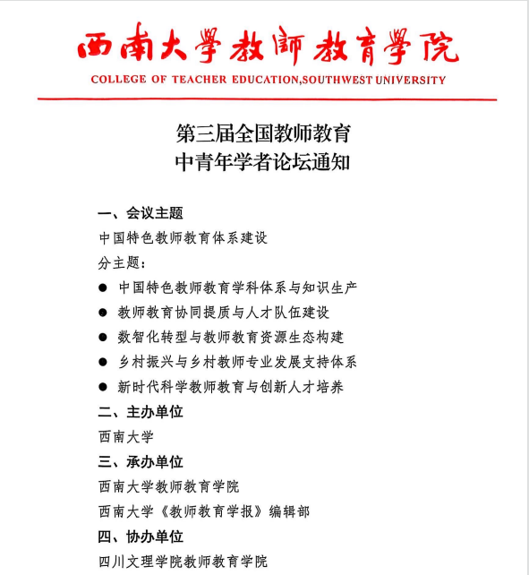 本次论坛的成功举办,不仅彰显了西南大学在教师教育领域的卓越引领力,更充分展现了全国中青年学者锐意创新的蓬勃活力。论坛讨论紧扣国家教育强国战略,从理论构建的知识生产到协同提质的人才培养,为中国特色教师教育体系的发展注入了强劲的学术动能。作为协办方,四川文理学院万象城体育awcsport通过此次高规格、高水平的学术交流,进一步拓展了视野,深化了与全国同行的联系,为万象城教师教育学科发展、人才培养模式创新汲取了前沿理念与宝贵经验。学院将以此为契机,持续提升办学水平与科研能力,积极融入国家教师教育体系建设大局,为培养新时代高素质专业化创新型教师队伍,服务地方乃至国家教育高质量发展作出新的更大贡献。