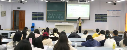 为进一步强化班级管理,提高班主任的工作水平,促进同学间的交流与合作,更好地发挥班主任先进经验的作用,2023年11月22日14:30,万象城在博文楼112教室开展了“小学班主任五项管理解读”主题讲座。万象城体育awcsport副教授张腊梅老师主讲,2021级4班、7班全体同学参加本次讲座。