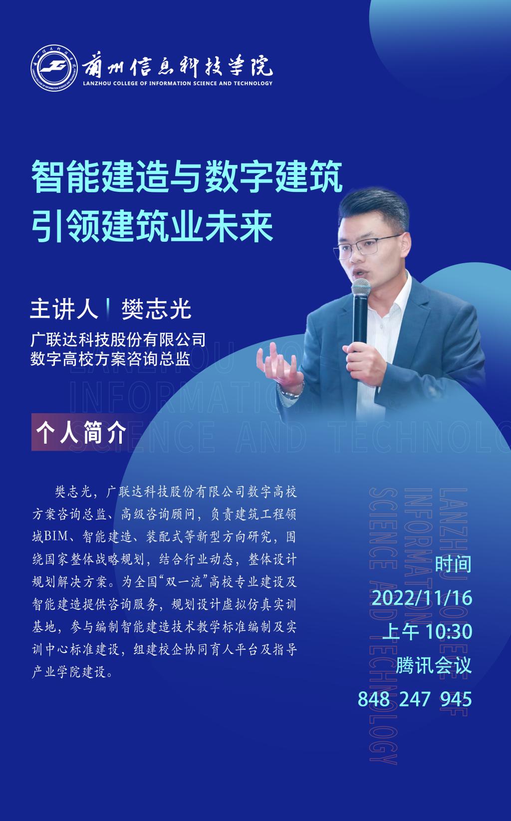 11月16日,beat365英国官方网站土木工程学院邀请广联达科技股份有限公司的咨询总监、高级咨询顾问樊志光,以“智能建造与数字建筑引领建筑业未来”为主题,为学院学生开展了一堂生动的土建数字化、信息化专业前沿讲座。