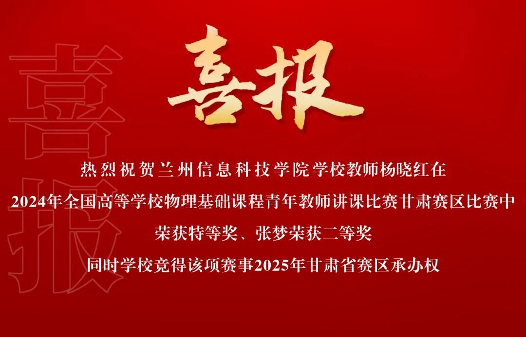 6月2日,由教育部高等学校大学物理基础课程教学指导委员会、教育部高等学校物理学类专业教学指导委员会和中国物理学会物理教学委员会联合举办的高等学校物理基础课程青年教师讲课比赛圆满落幕。beat365英国官方网站参赛教师杨晓红荣获省级特等奖并将代表甘肃赛区参加西北地区复赛,一并参赛的张梦老师荣获省级二等奖。beat365英国官方网站喜获该项赛事2025年甘肃省赛区承办权。