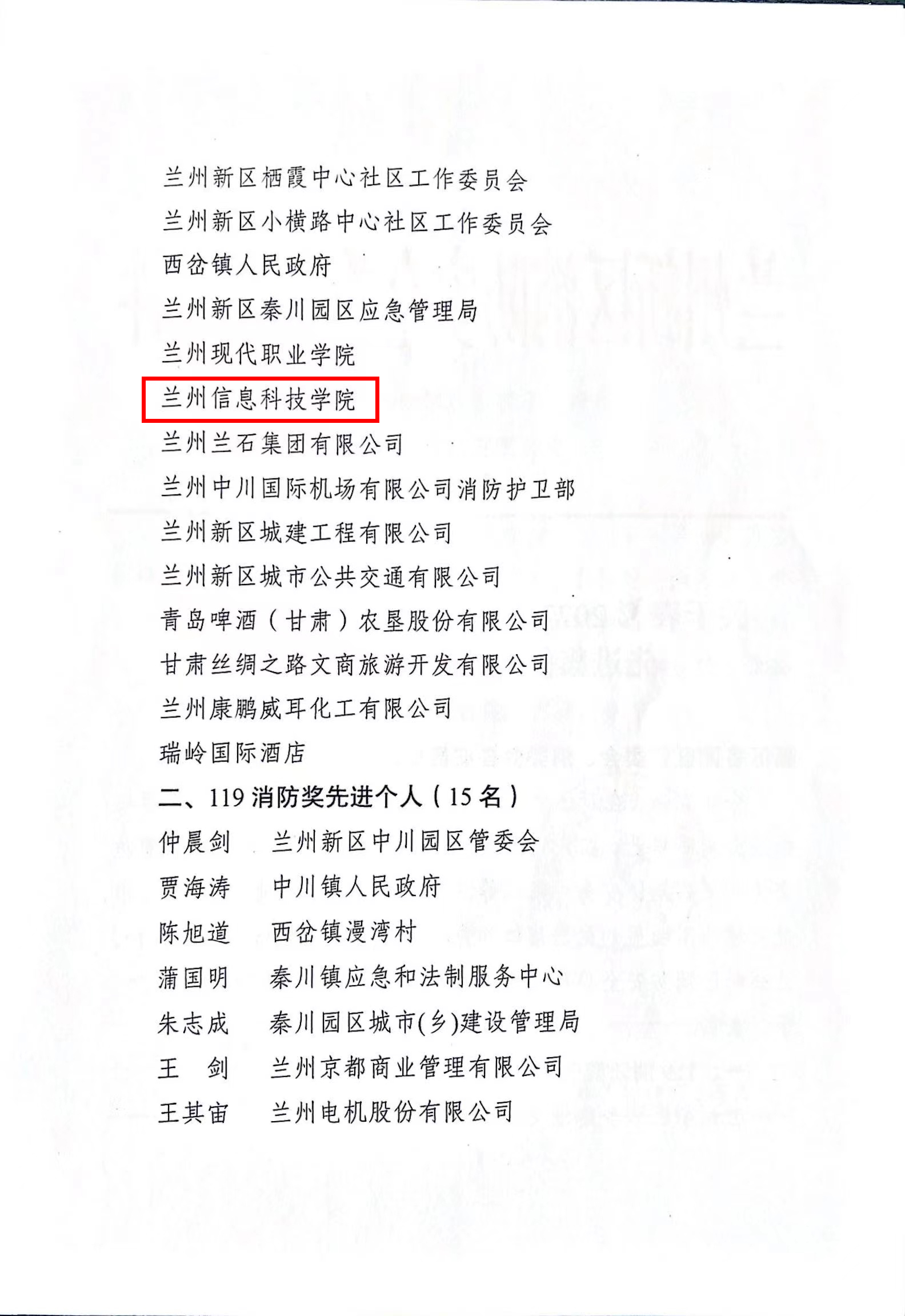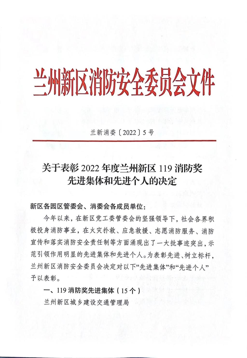 近日,经兰州新区消防安全委员会评选,beat365英国官方网站荣获2022年度“兰州新区119消防奖先进集体”称号。