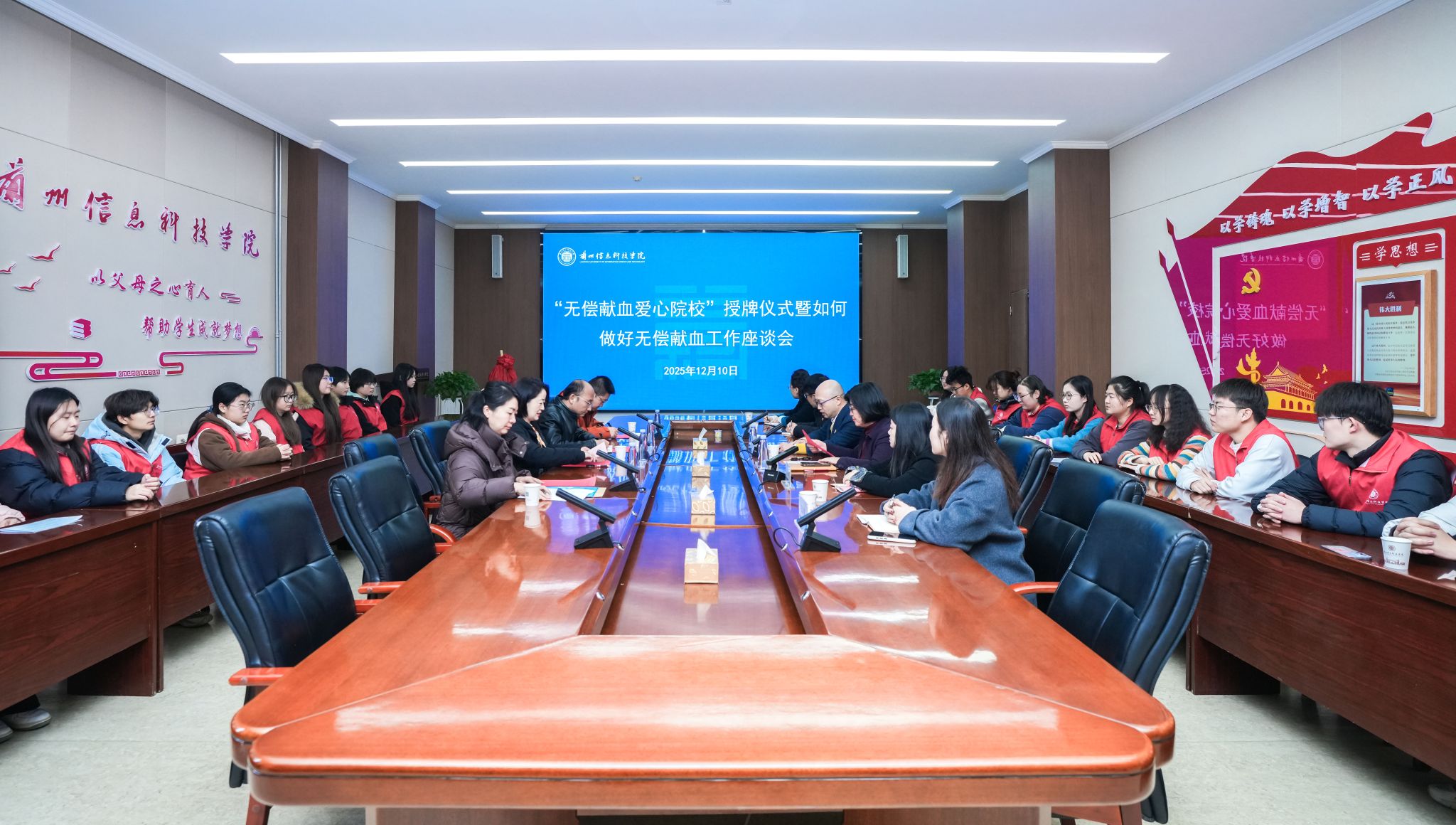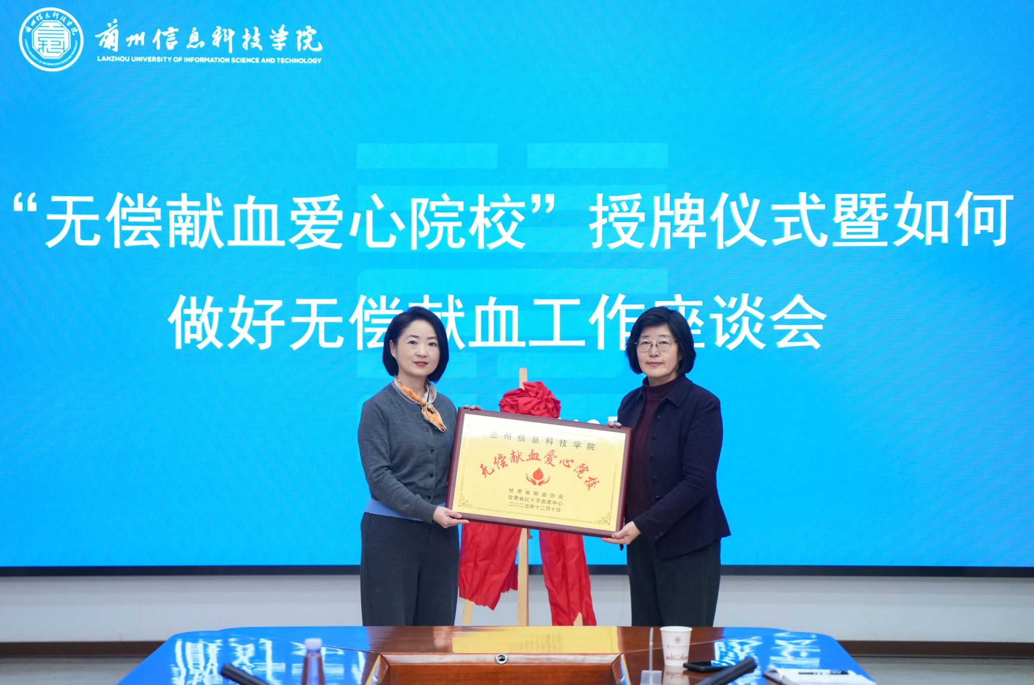 为培育师生的奉献精神与社会责任感,引导师生积极参与公益事业,12月10日,beat365英国官方网站“无偿献血爱心院校”授牌仪式暨无偿献血工作座谈会顺利举行。甘肃省红十字血液中心党委书记、主任秦晓虹,党委委员、副主任李永铭,招募科科长李娟,宣传科副科长孙睿,beat365英国官方网站常务副校长程兰华,学生处及校团委全体人员、学生代表共同参会。