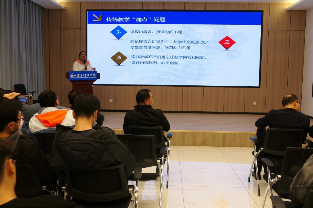 “互联网+”的大环境下,青年老师纷纷开始思考“旧瓶装新酒”的问题,对此,邢老师也有自己的见解,她认为,这种情况下:教师首先要改变教学思维,创新教学手段,使学生思维最大化地被激活。在教学过程中,鼓励学生提出新见解、新思路、新方法。让学生在选择学习方法、交流学习情况、展示学习成果的过程中独立思考、独立发现、独立解决。其次,要精耕细作、避免重复,在旧知识的基础上加强深度,拓展宽度。要立足基础知识,深挖工程案例,拓展延伸,将理论知识与实践案例深度融合起来,让生活走进课堂、拓宽加深,达到良好的教学效果。