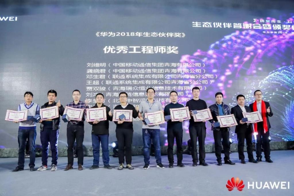 王超(右四)在华为生态伙伴颁奖会中荣获优秀工程师奖