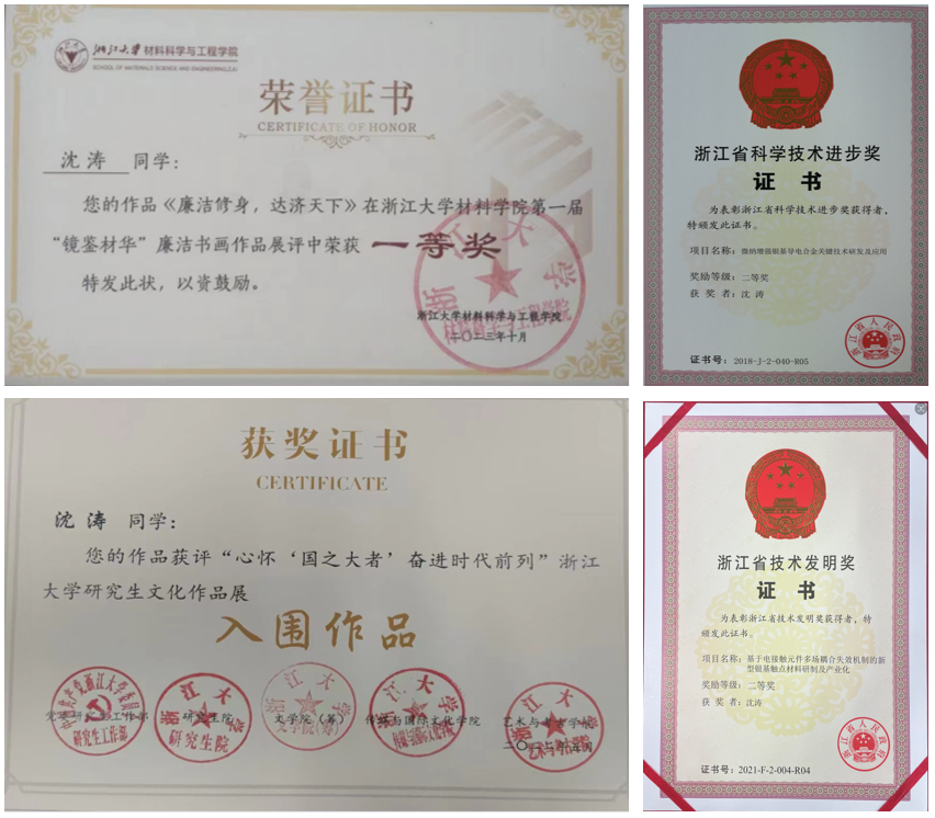 ●2019/09 – 2023/12 浙江大学| 博士 | 材料物理化学专业 | 银基电接触功能复合材料
