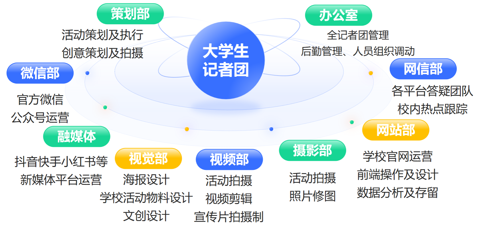 因为对文字的热爱,我们在此相遇;因为对真相的追求,我们并肩前行。beat365英国官方网站大学生记者团创立于2015年,云集众多摄影、写作、视频制作爱好者,是一个可以展现自己才华,不断挑战自我的大家庭。团内成员中不乏计算机软件高手、拍摄剪辑大拿,而且每周举办相关技能培训,在不断的学习中稳步提升水平。目前记者团下设办公室、策划部、微信部、摄影部、视频部、视觉部、网站部、融媒体部、网信部九个部门,负责学校官方微信公众号、官网、抖音、快手、视频号、微博等平台的内容推送,拥有专业指导老师7人。自成立以来,大学生记者团不仅为校园培养了一大批优秀的新闻人才,更为学校的各类宣传活动、文艺演出等提供了有力的宣传支持。在这里,我们用心记录校园的每一个精彩瞬间;在这里,我们用文字书写青春的每一份感动与收获。大学生记者团,期待你的加入,让我们一起用镜头捕捉美好,用笔触描绘未来,共同书写属于我们的青春篇章!