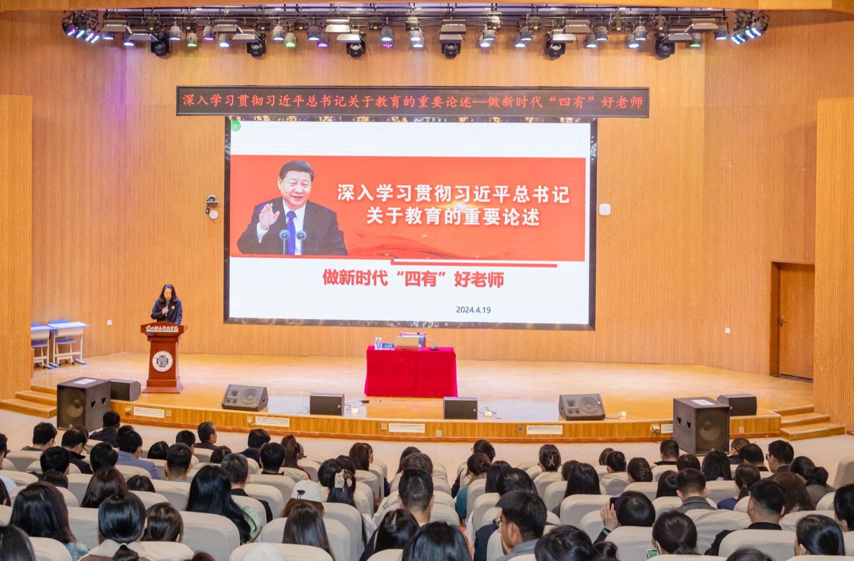 培训会上,周怀春以《学习贯彻习近平总书记关于教育的重要论述——做新时代“四有”好老师》为题,从“教育、教师、实践启示、党政要求”等方面全面系统解读了作为新时代教师的社会责任。并就如何更好打造符合beat365英国官方网站专业特色的高素质人才,如何进一步提升育人治理效能等提出了新的要求。周怀春强调广大教师要以习近平总书记教育重要论述为指引,既要做“经师”,又要甘当“人师”,严格要求自己,为教育强国培根、铸魂、启智、润心。他说,“我们要持续完善师德教育体系,提升师德教育水平,引导教师提升育人水平,强化师德监督,有效防止师德失范行为。”