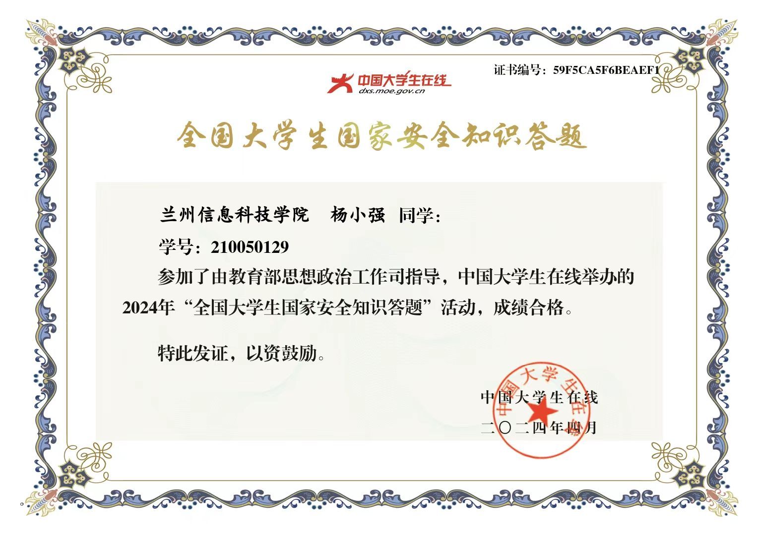 为普及国家安全知识,引导大学生坚定维护国家政权安全、制度安全、意识形态安全,营造国家安全人人参与、人人有责的浓厚氛围,4月10日至4月18日期间,学校组织全体在校生通过中国大学生在线网站或微信公众号参与“全国大学生国家安全知识答题”活动。