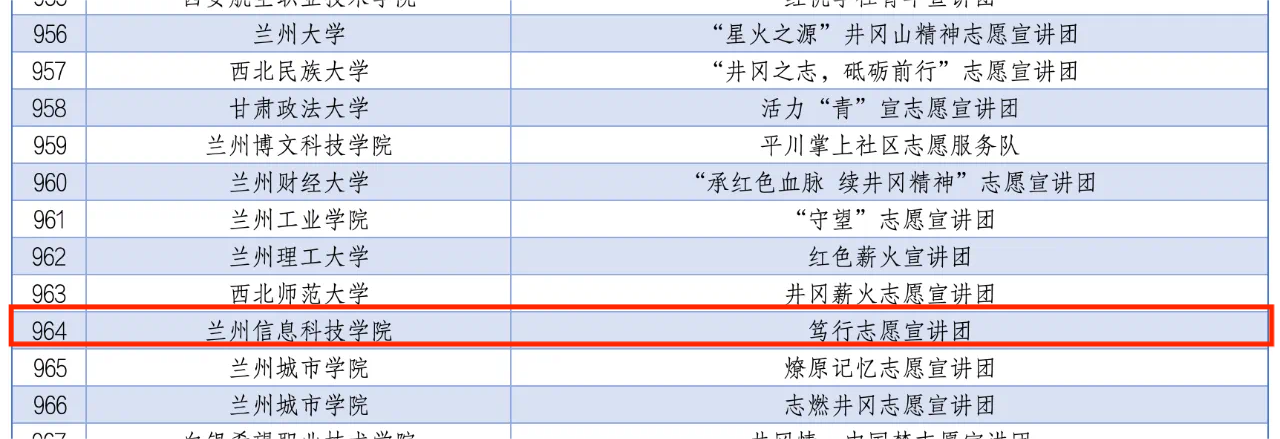 2024年全国大学生井冈山精神志愿宣讲团入选团队名单(排名不分先后)