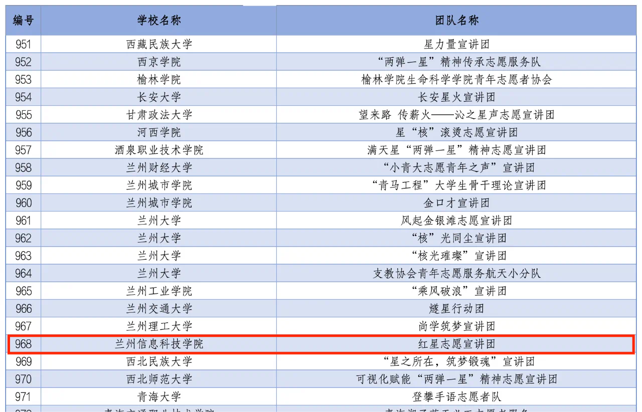 2024年全国大学生“两弹一星”精神志愿宣讲团入选团队名单(排名不分先后)