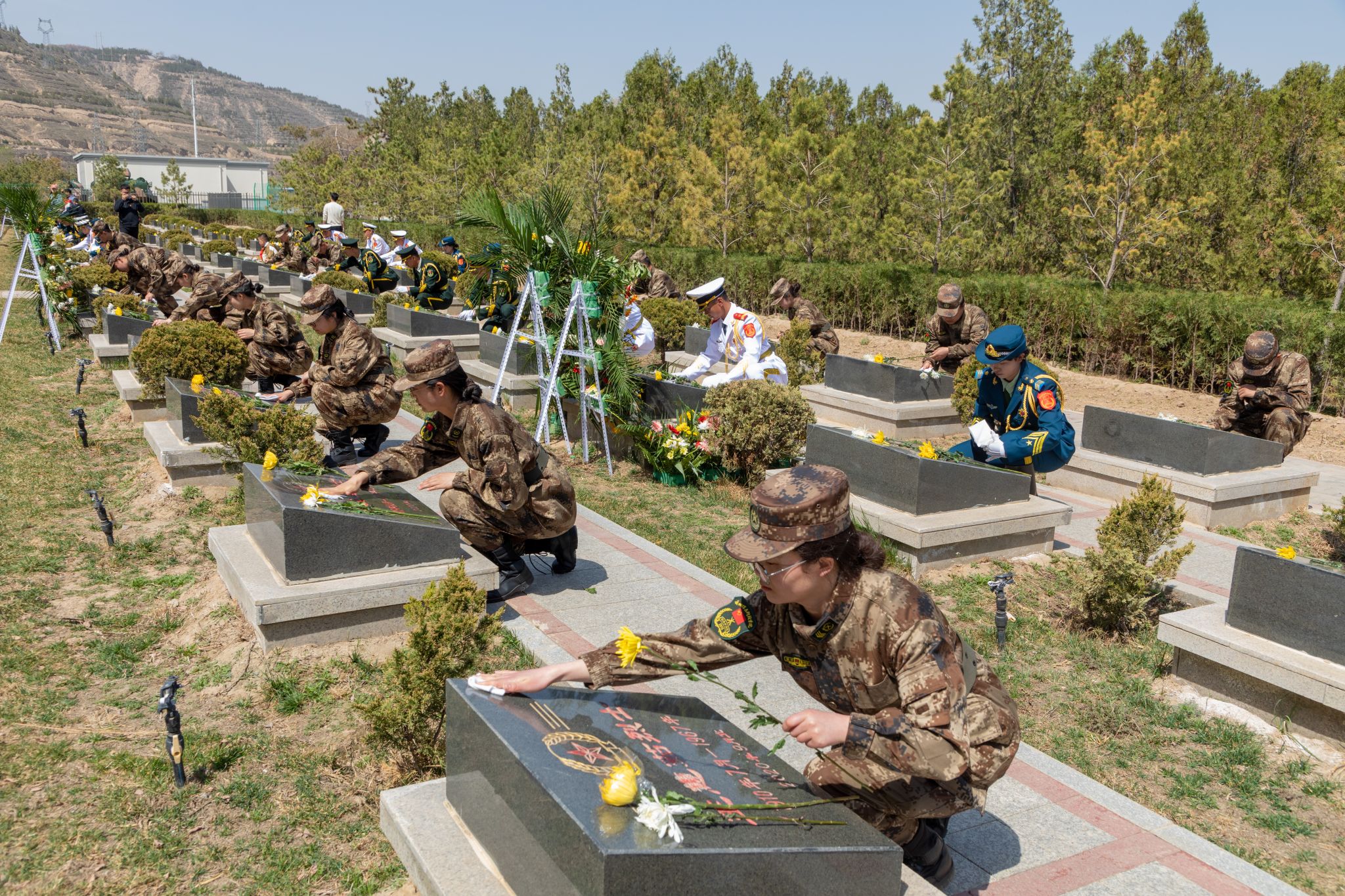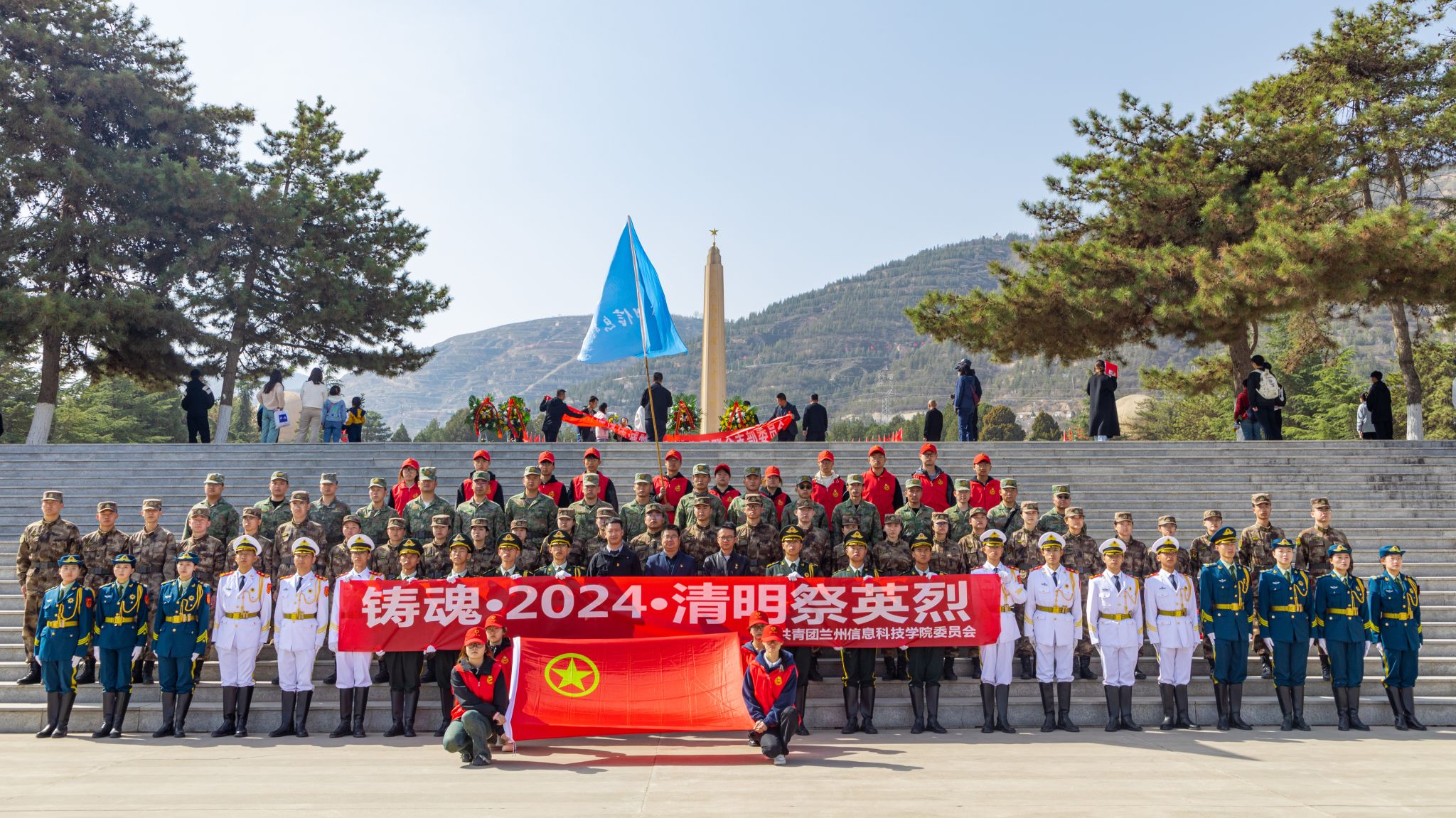 英雄不朽,精神永存。为深入学习贯彻党的二十大精神,重温历史,缅怀革命先辈,传承和发扬党在为祖国和民族争取自由、独立、解放、复兴过程中前赴后继,英勇奋斗的革命精神。4月4日,beat365英国官方网站组织国旗护卫队、国防后备营、青年志愿者前往兰州市烈士陵园开展清明节祭扫活动,回望星火岁月,缅怀革命先烈,传承红色基因,汲取奋进力量。