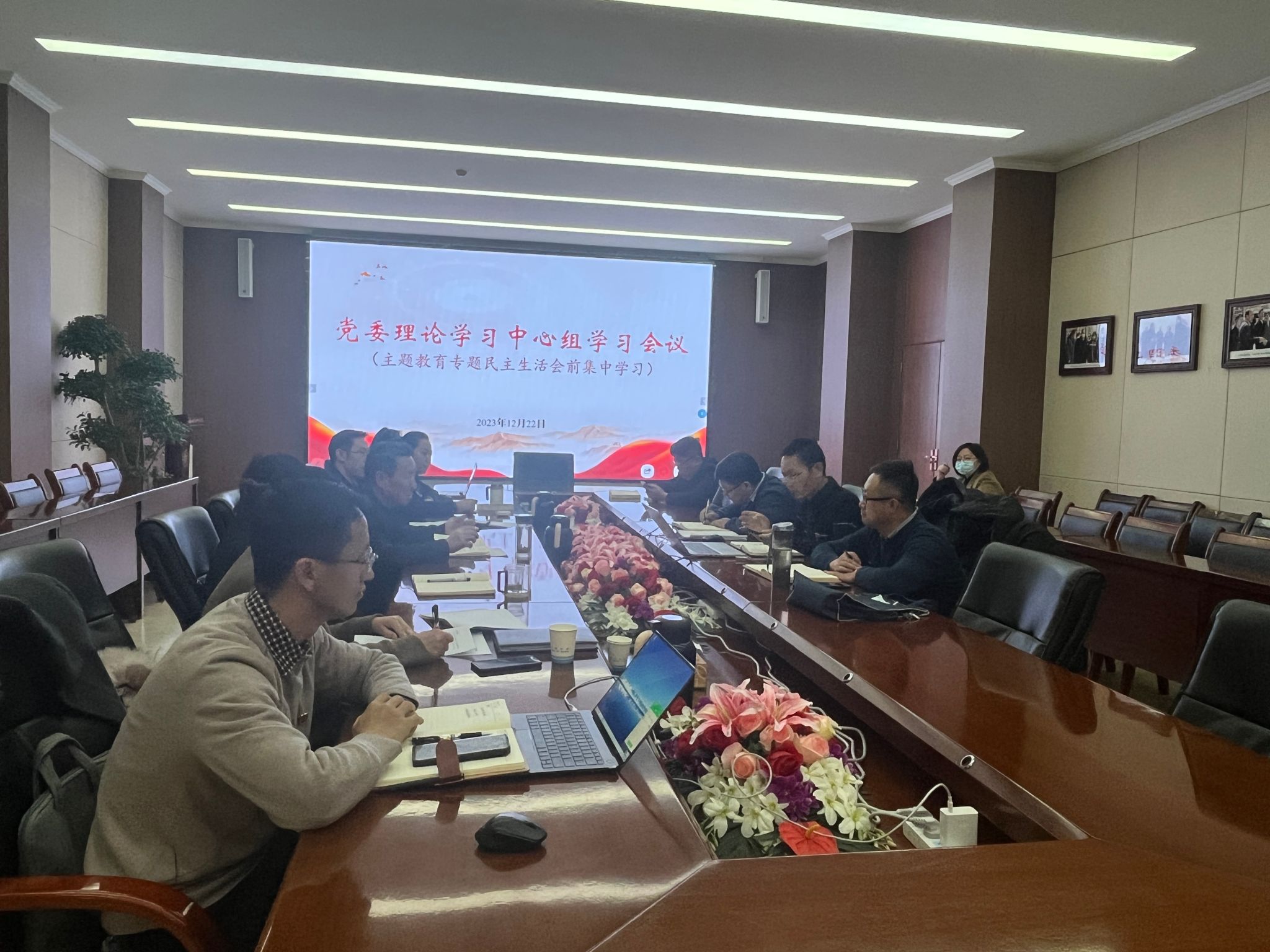 12月22日上午,学校党委理论学习中心组召开会议,开展学习贯彻习近平新时代中国特色社会主义思想主题教育专题民主生活会会前集中学习,深入学习习近平总书记关于党的建设的重要思想,学习习近平总书记关于严肃党内政治生活的重要讲话和重要指示批示精神,学习习近平总书记关于以学铸魂、以学增智、以学正风、以学促干的重要论述,进一步统一思想、深化认识,为开好主题教育专题民主生活会打牢思想基础。党委委员及全体校领导参加会议。党委书记周怀春主持会议并讲话。