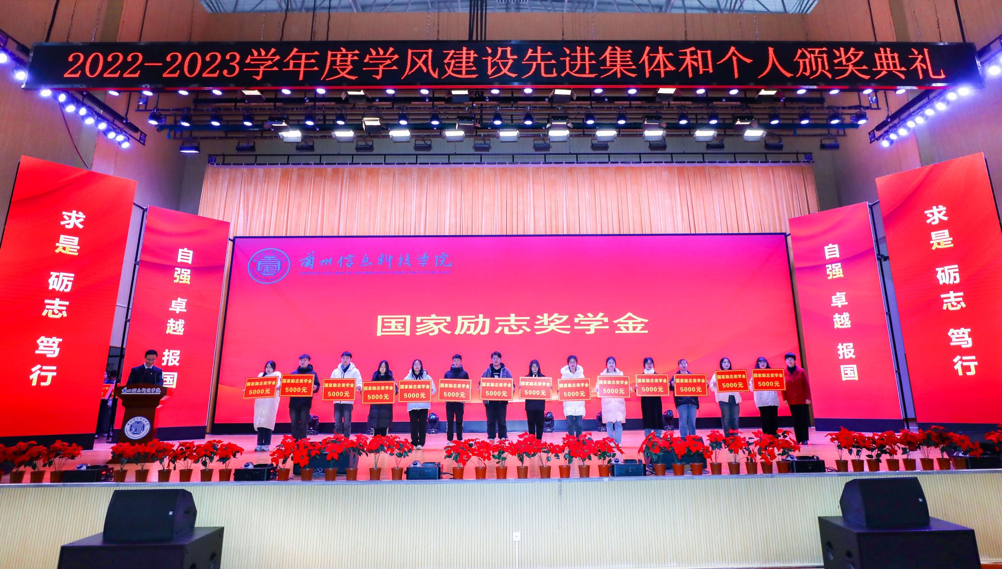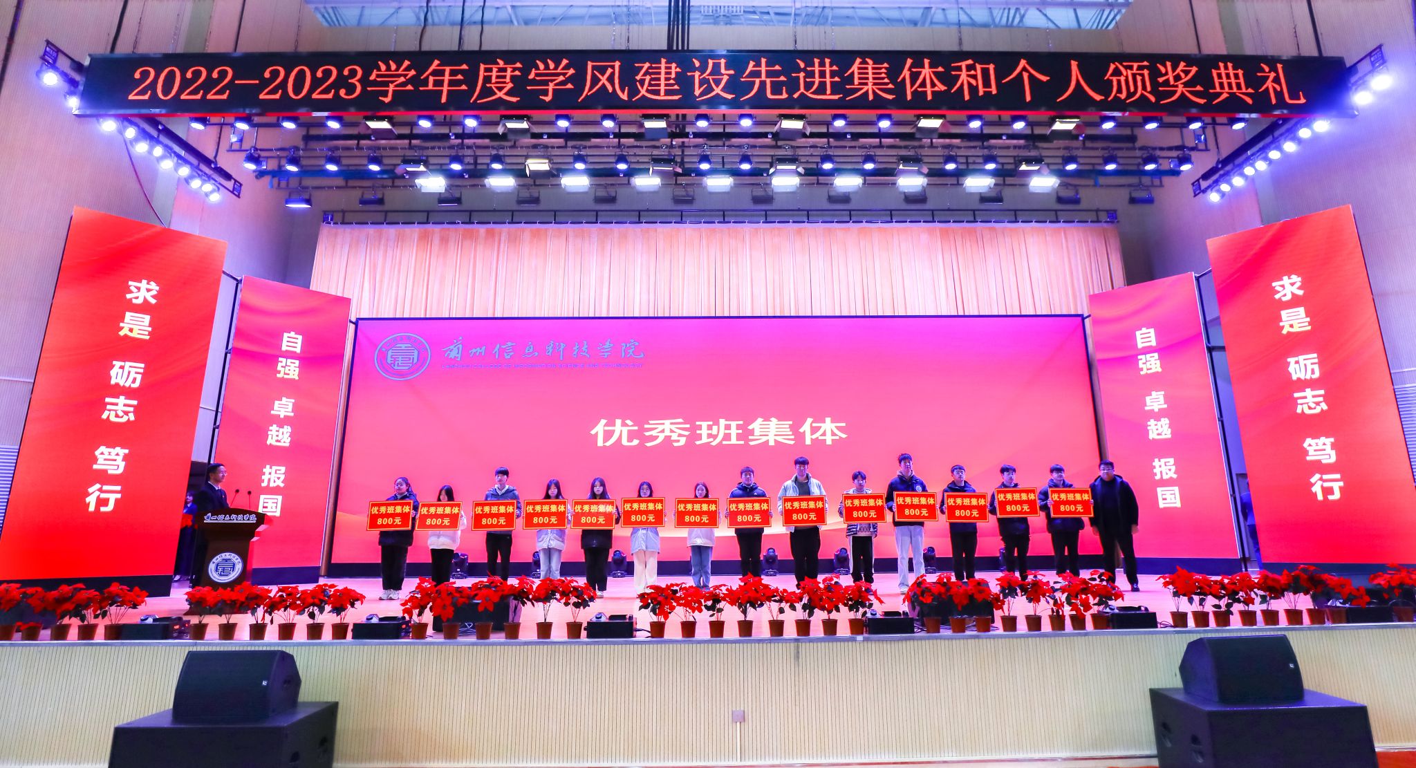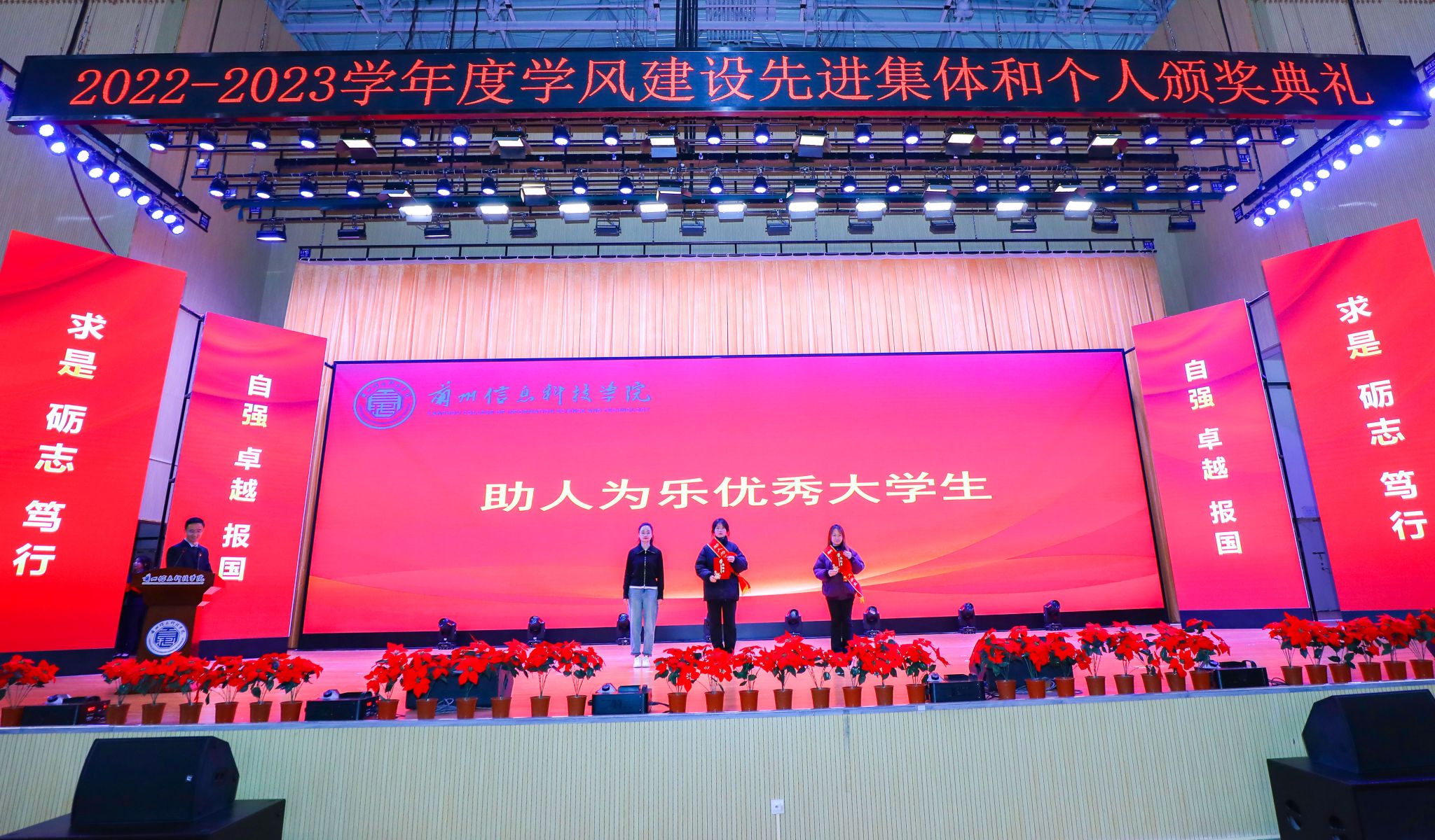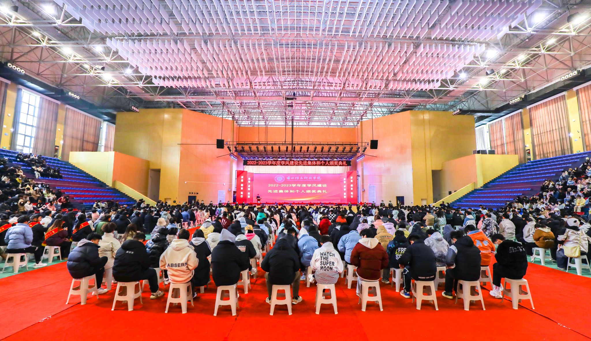 为表彰先进,树立榜样,深入推进学校学风建设工作,12月15日,beat365英国官方网站2022-2023学年度学风建设先进集体和个人颁奖典礼在体育馆隆重举行。校长程兰华、校长助理朱明敏、校长助理李阳、各二级学院院长、各职能部门负责人、全体辅导员、全体获奖学生、教师代表、学生代表、获奖学生家长代表共4000余人参会。