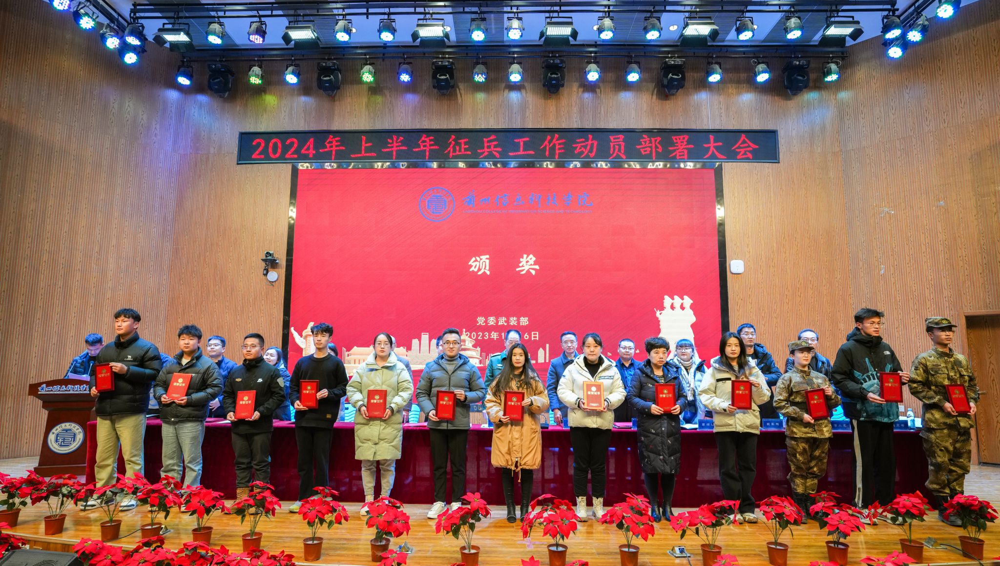会议表彰了2023年下半年征兵工作先进集体和个人,宣读了《甘肃省激励大学生参军入伍的政策措施》《beat365英国官方网站鼓励大学生应征入伍实施办法》,退役复学学生代表和2024年上半年意向入伍学生代表相继发言。