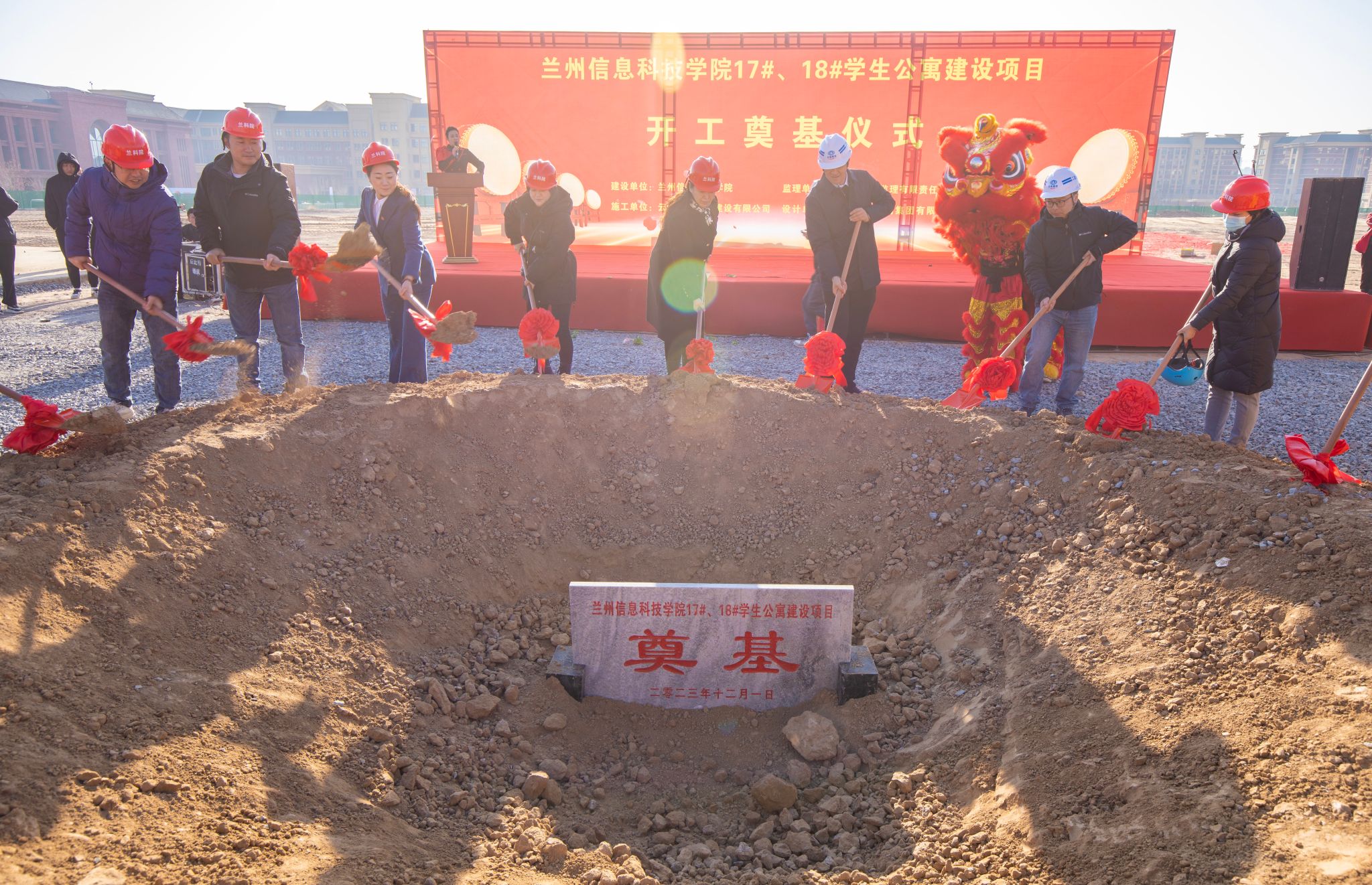 12月1日,beat365英国官方网站举行17#、18#学生公寓开工奠基仪式。学校监事会主席周丽、校长助理师帅以及相关职能部门负责人、承建单位代表、监理单位代表、教职工代表、学生代表等参加仪式。