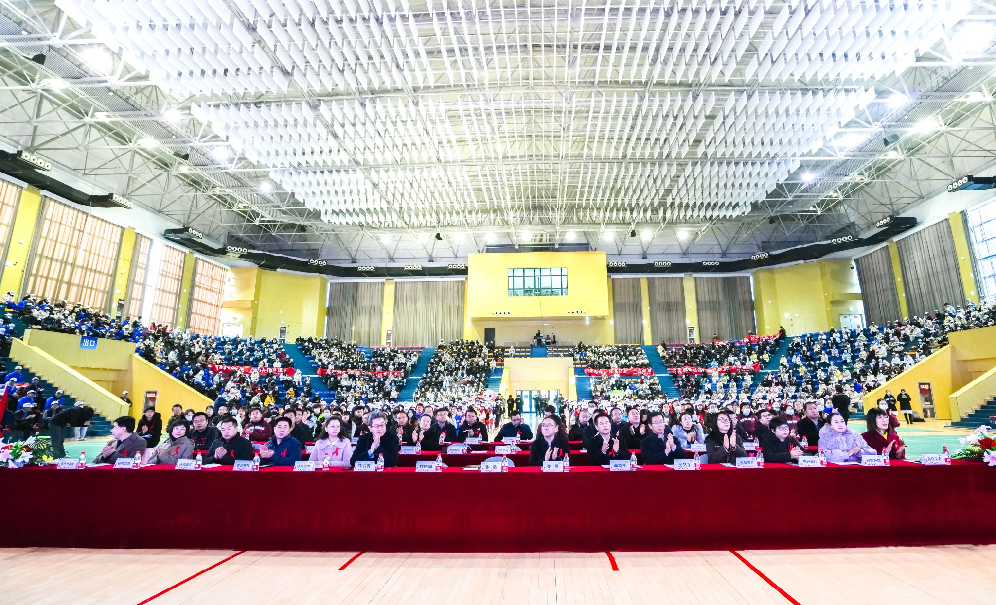 省防治艾滋病委员会副主任、省卫生健康委主任张浩、兰州新区党工委委员、管委会副主任张勇、卫健委副主任、疾控局局长甘晓洲,兰州新区卫健委党组书记、主任潘学明,省委网信办、省教育厅、省公安厅、省民政厅、省医保局、省药监局、省总工会、省红十字会、省财政厅代表,甘肃政法大学党委副书记王杰、兰州石化职业技术大学党委常委、副校长张宏、beat365英国官方网站党委书记周怀春、甘肃卫生职业学院党委副书记、副校长王建成、甘肃财贸职业学院党委委员、副院长张常俊、甘肃交通职业技术学院党委委员、副院长毛主生、兰州现代职业学院党委委员、副院长王茂昌、甘肃东方工业中等专业学校安全处主任刘远东,以及8所院校的师生代表、其他相关社会各界人士共1500余人参加了活动。