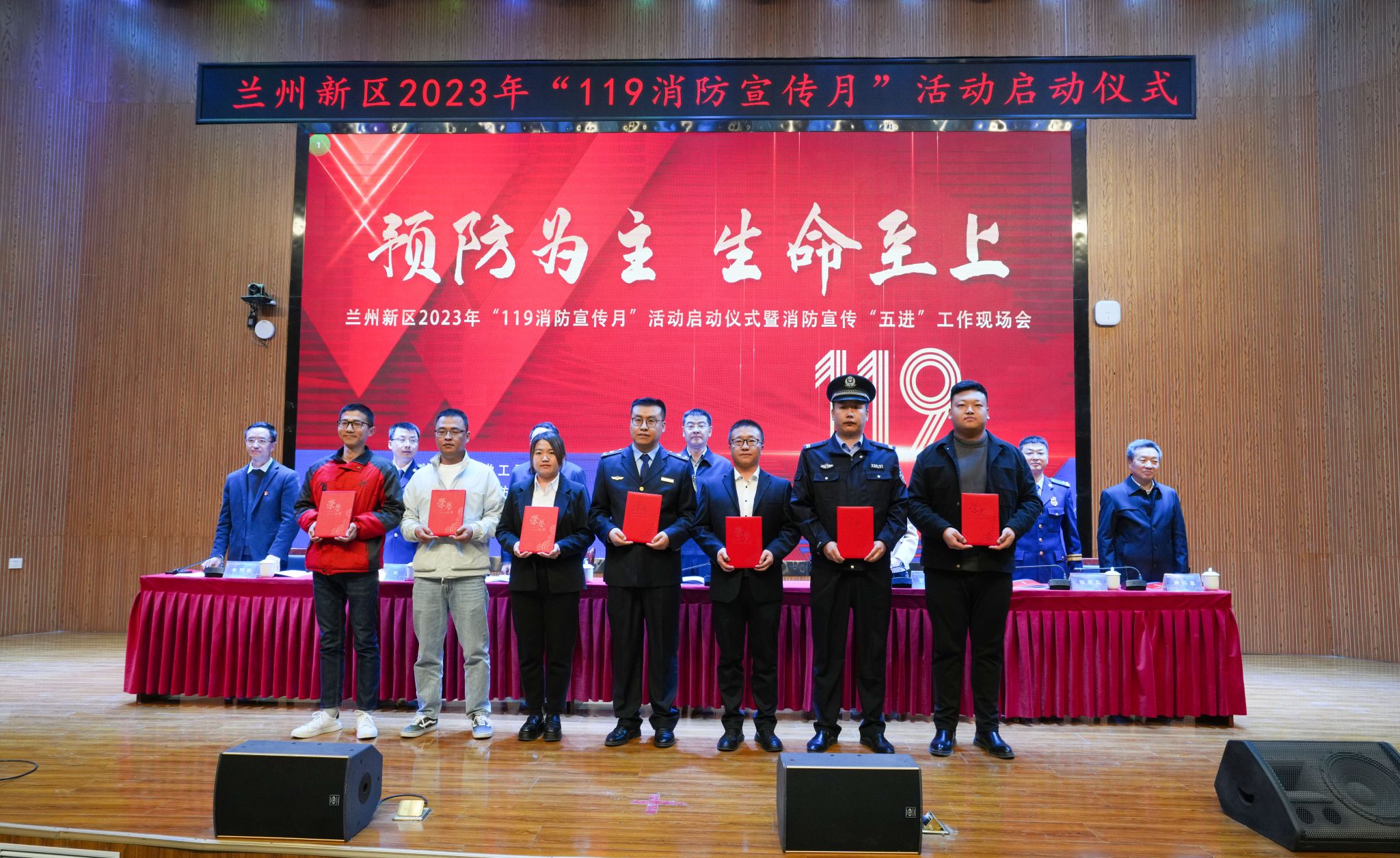 大会总结表彰了2023年度兰州新区“119消防奖”先进集体、先进个人、优秀消防教师及消防小卫士,杨军为beat365英国官方网站颁发“2023年度兰州新区消防宣传‘五进’工作荣誉奖章”,学校保卫处赵琦老师获得“兰州新区119消防奖先进个人”荣誉称号。校长助理朱明敏结合学校消防工作实际作先进集体交流发言。