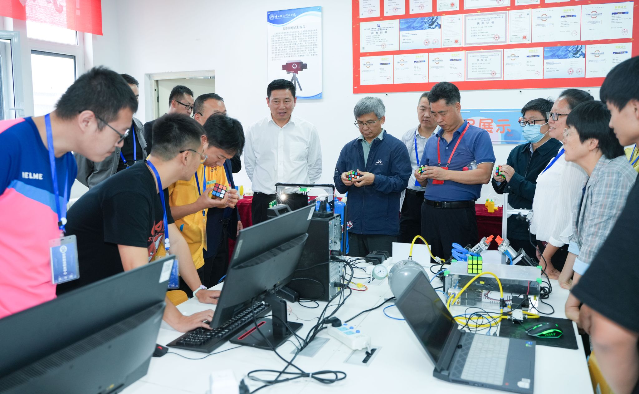 会后,专家组详细查阅了各类支撑材料,并与校领导、中层干部代表、教师代表和学生代表等进行了座谈。在实训楼、图书馆以及产业学院等区域边走边看时,专家组高度赞赏学校近年来取得的办学成果。