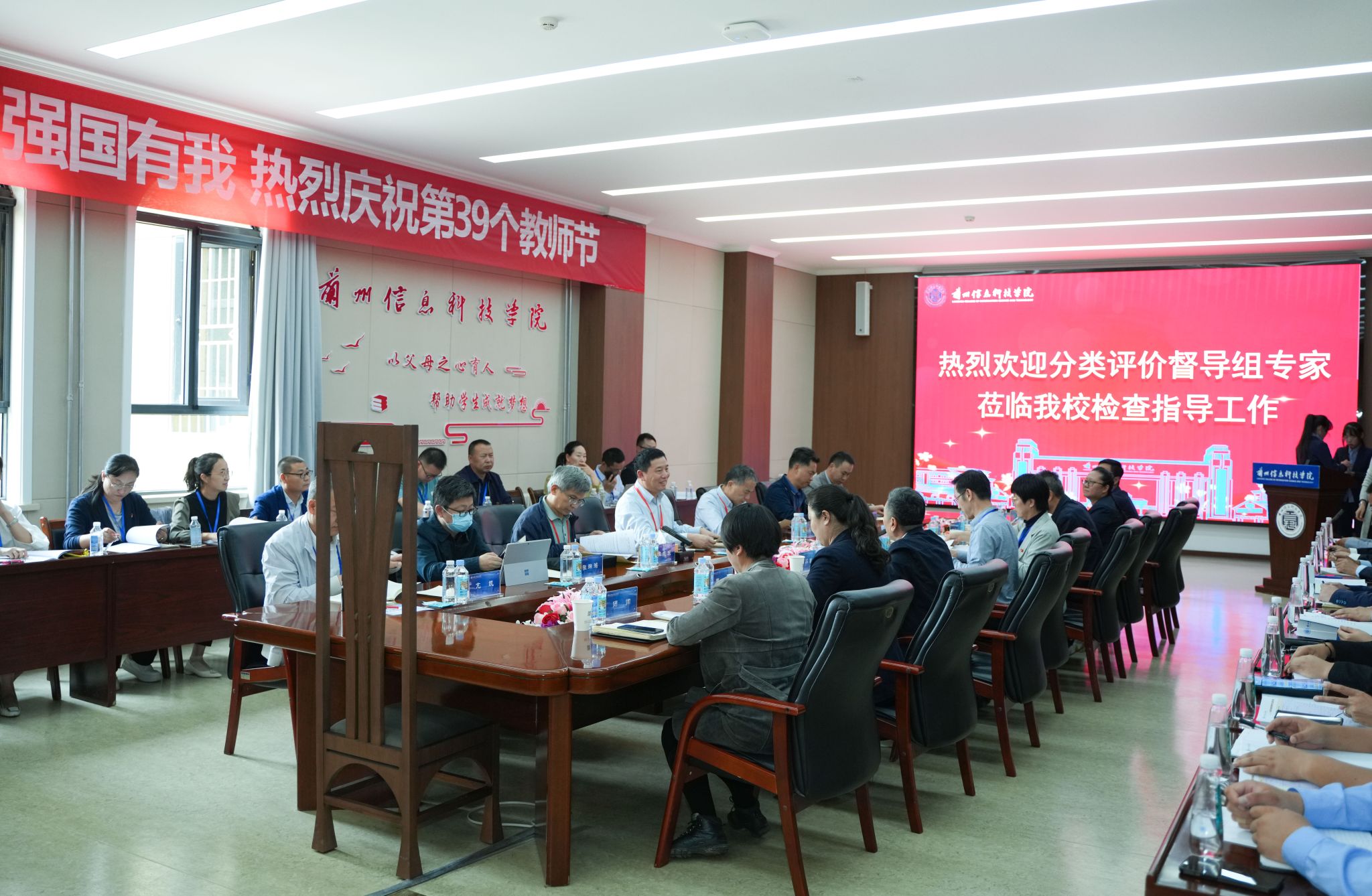 在当天召开的分类评价督导汇报会上,专家组组长丛玉豪介绍了现场督导工作的背景意义、督导程序和工作要求。理事长黄炜对专家组的到来表示热烈欢迎和衷心感谢,他表示,beat365英国官方网站将坚决贯彻分类评价督导工作要求,提高思想认识,以高度的政治责任感认真对待分类评价督导工作;坚决服从分类评价督导工作安排,全力支持配合,以端正的态度做好服务保障;坚决认领督导检查发现问题,坚持立行立改,以良好的作风抓好整改。校长程兰华从学校基本情况、自查情况、办学特色、存在问题和改进措施等五个方面作了自评汇报。