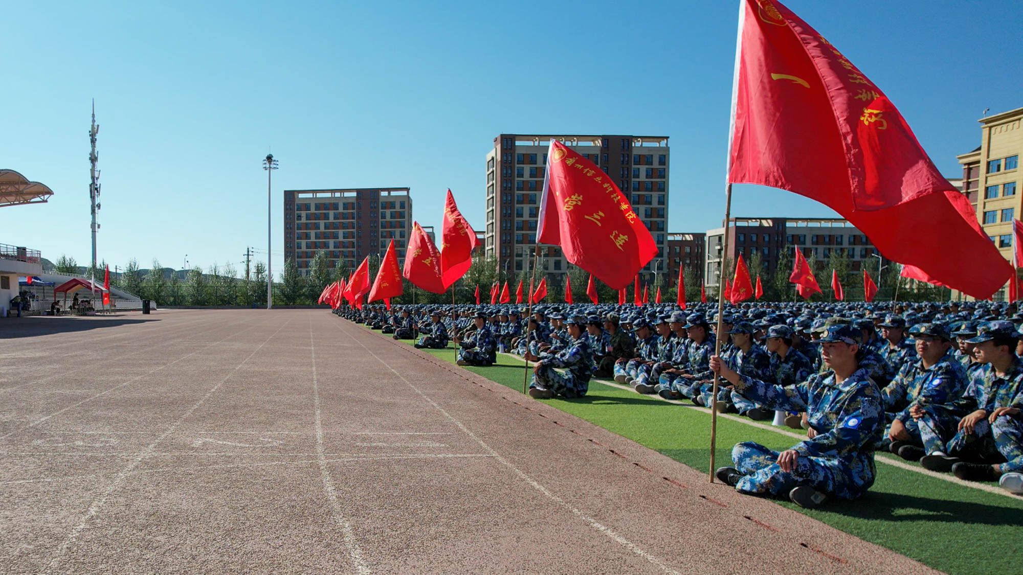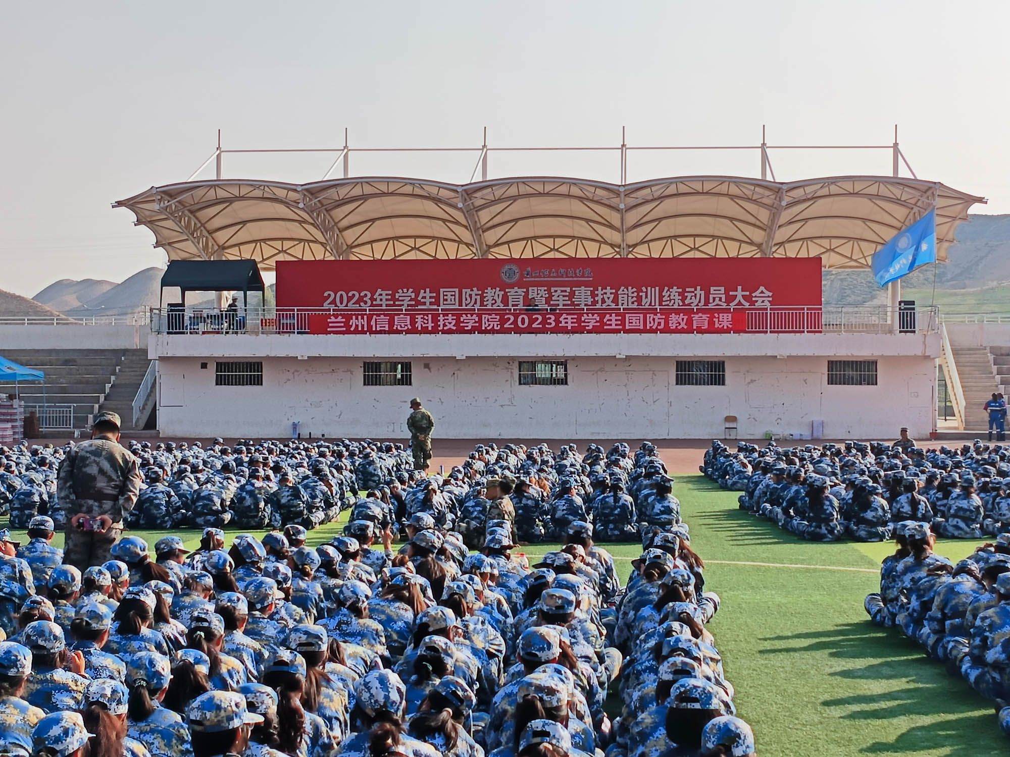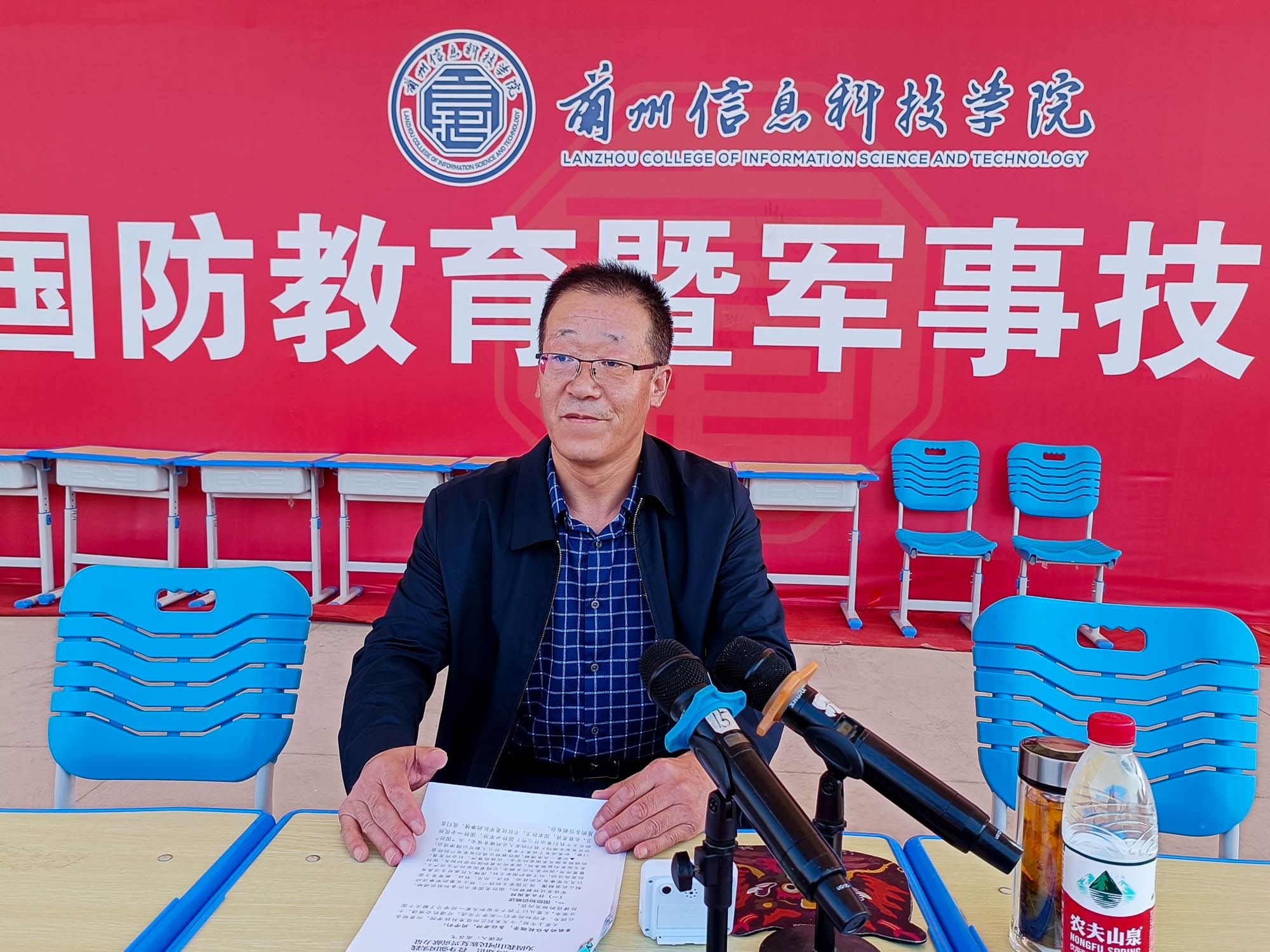 国无防不立,民无兵不安。国防建设关系到国家存亡和民族兴衰,国防教育也是建设和巩固国防的基础,对增强民族凝聚力、激发爱国主义精神具有重要意义。为进一步加强全民国防教育、增强国防观念、激发爱国热情、振奋民族精神,培养同学们的爱国拥军热情,9月6日beat365英国官方网站邀请武警甘肃总队兰州支队政治工作部主任高召飞同志为师生作国防教育专题报告会,参加军训的6200余名学生现场聆听。