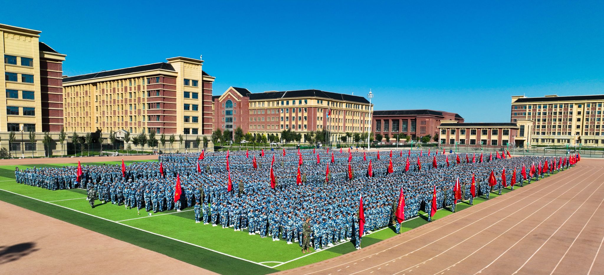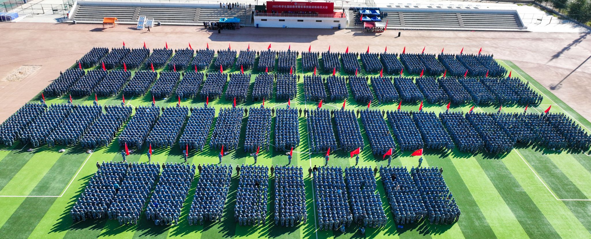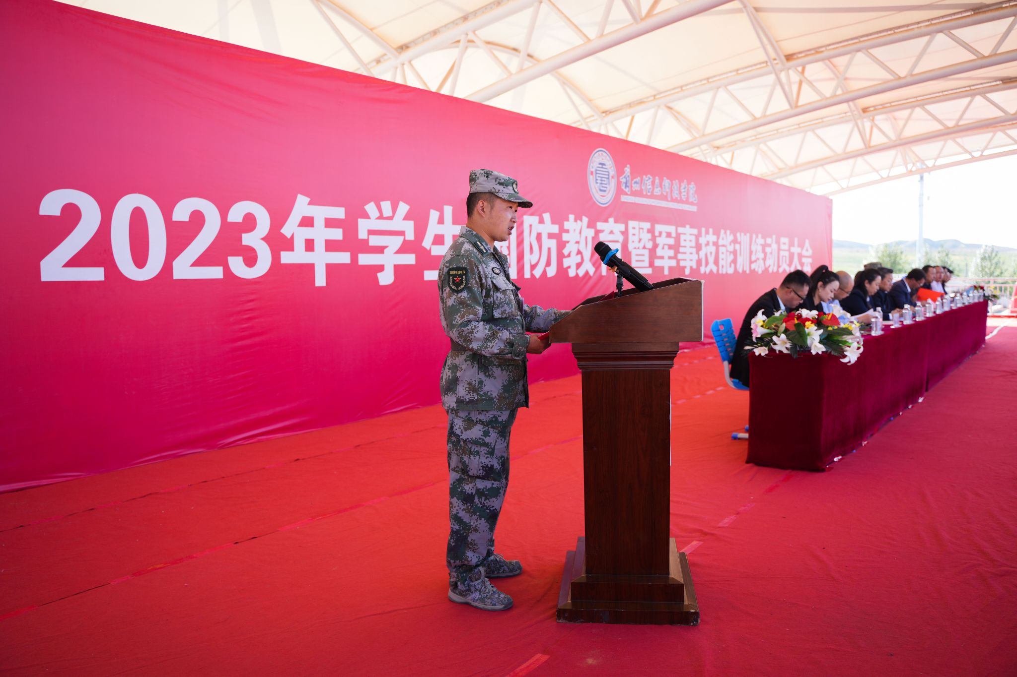 热血铸军魂,青春正当时,8月29日上午,beat365英国官方网站2023年学生国防教育暨军事技能训练动员大会在田径运动场隆重举行。全体校领导出席,各二级学院院长、军训教官、全体辅导员及六千余名参训学生参加了动员大会,大会由校长助理朱明敏主持。