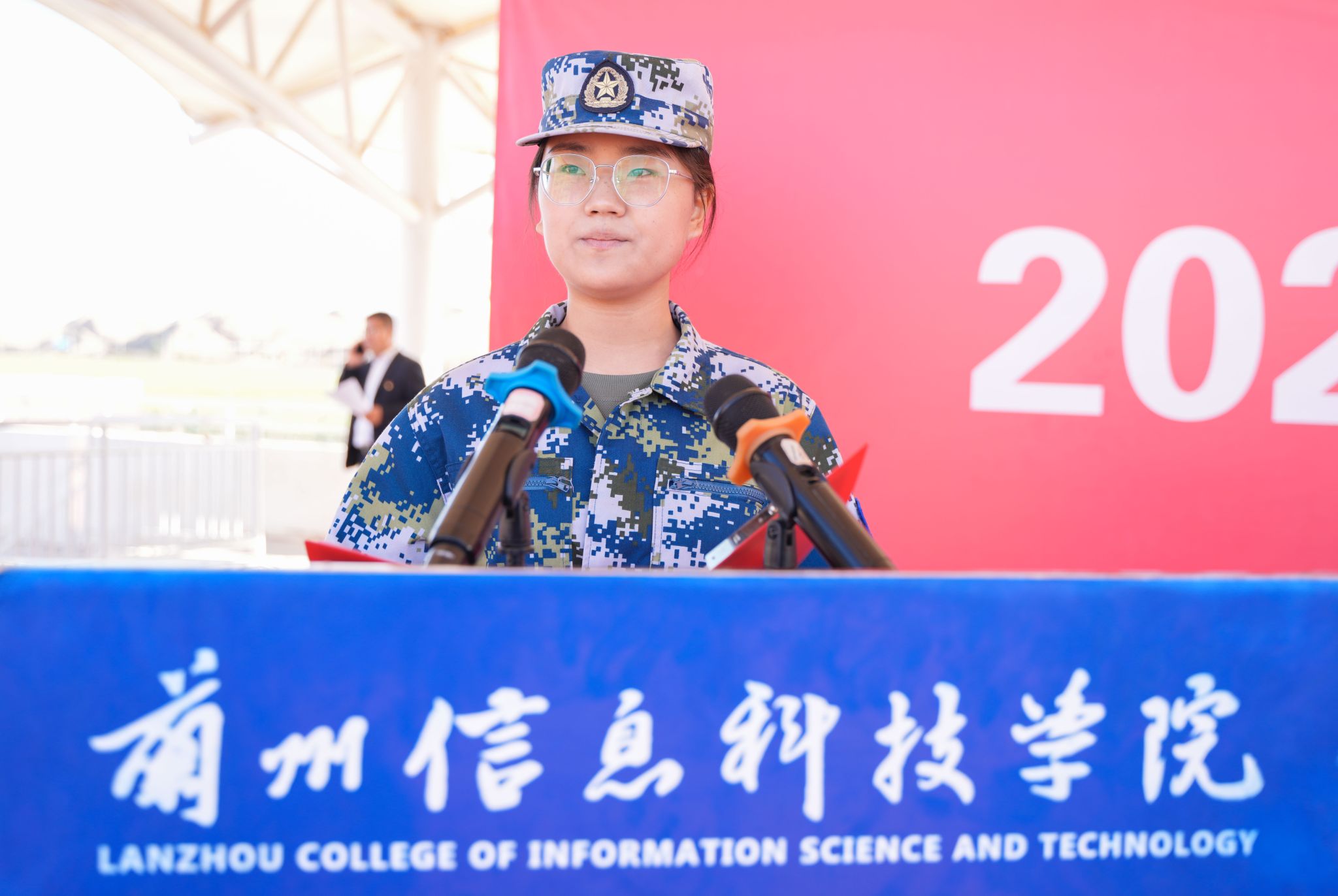 随后,军训教官代表和参训学生代表做表态发言,他们表示将始终践行“请党放心,强国有我”的青春誓言,把爱国之心化为报国之行,不断锻炼自我、完善自我、超越自我。