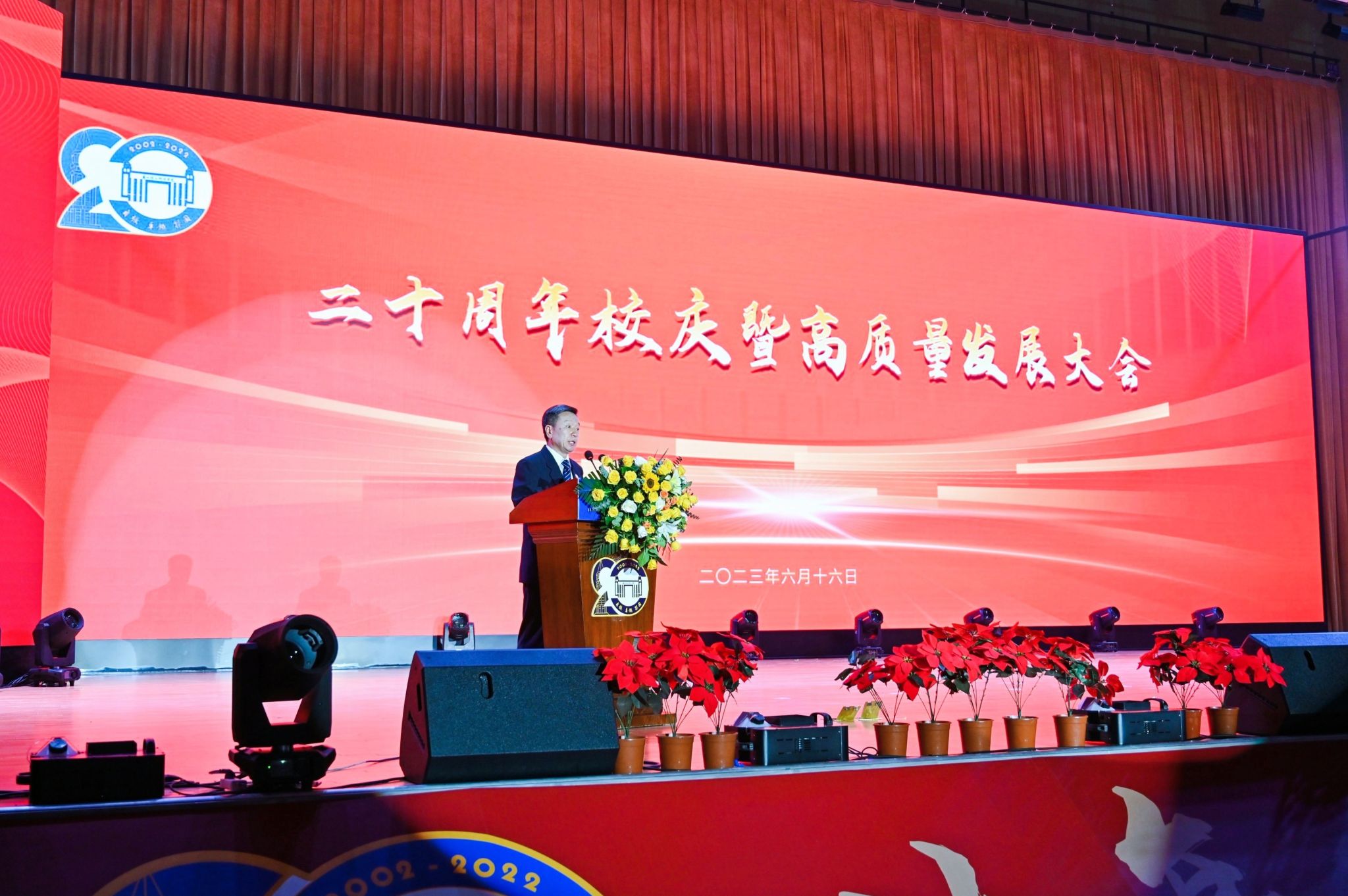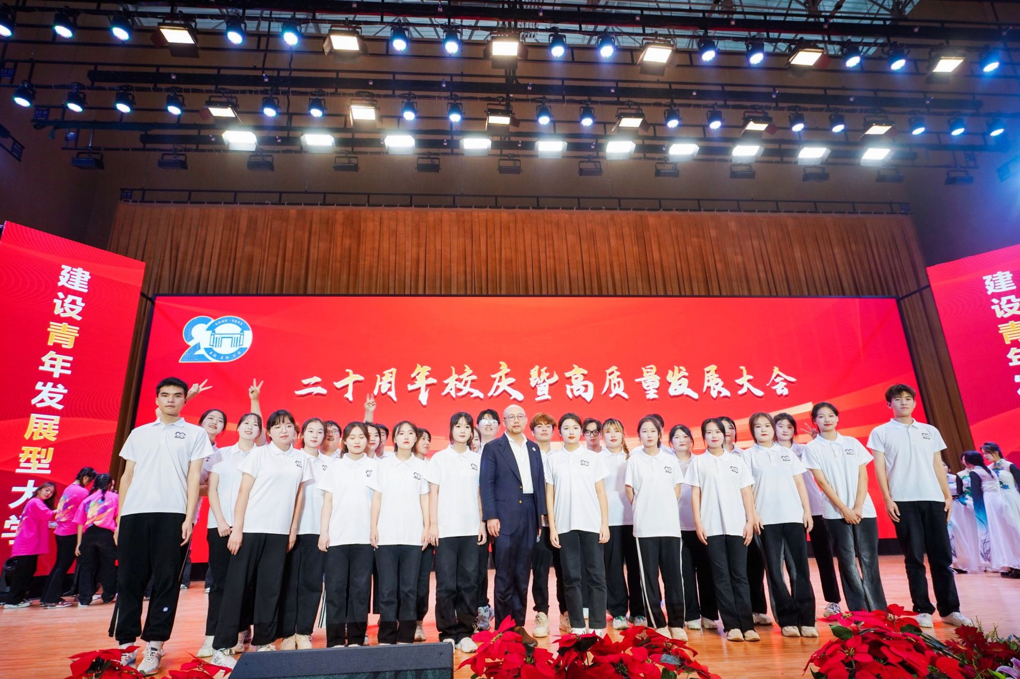 二十周年校庆是beat365英国官方网站总结办学经验、展示办学成果、弘扬学校精神、汇聚各方力量、激励师生奋进、推进高质量发展的重要契机。beat365英国官方网站校长黄炜回顾了20年办学历程,他表示,在20年的办学实践中,beat365英国官方网站落实立德树人根本任务,抢抓高质量发展机遇,践行“高质量就业是立校之本,高质量育人是生命线”发展战略,聚精会神干事业,一心一意谋发展,学科专业特色更加凸显,办学环境得到较大改善,综合办学实力不断增强,人才培养质量不断提升,培养了4万余名高素质应用型人才。新征程上,beat365英国官方网站将紧紧围绕“双高”战略,激发青年学生发展的动力,创造青年学生发展的条件,提升青年学生发展的能力,赢得青年学生发展的机会,提供青年学生发展的支持,勇担振兴之责,践行强国使命,聚焦“就业质量好、育人质量高、师资力量强、校园环境美、服务体验佳”的青年发展型大学目标,打造一流师资平台、建强一流学科专业、培养一流应用人才,坚定不移地推动高质量发展,为区域经济社会发展培养更多优秀人才。