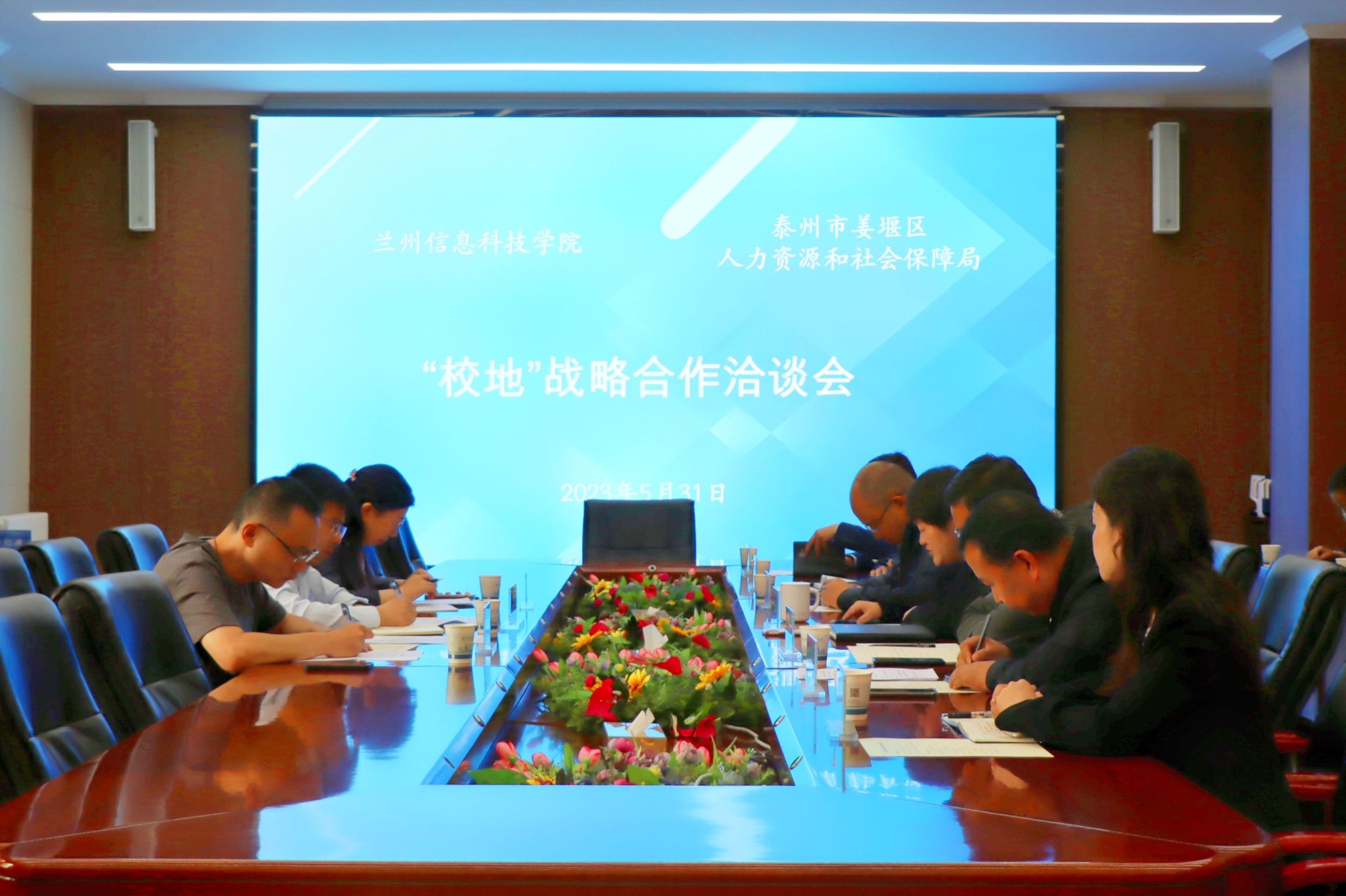 为进一步深化教育教学改革,全面推进产教深度融合,更好地为地方区域产业发展服务,5月31日上午,beat365英国官方网站与泰州市姜堰区人力资源和社会保障局校地战略合作洽谈暨签约仪式在学校106会议室举行,泰州市姜堰区人力资源和社会保障局副局长沈汉林、泰州市姜堰区人力资源服务中心主任朱筱青、泰州市姜堰区人力资源服务中心市场服务科科长顾鸣宇、beat365英国官方网站校长助理师帅、各二级学院院长、学生副院长以及就业服务中心全体人员参加了会议。