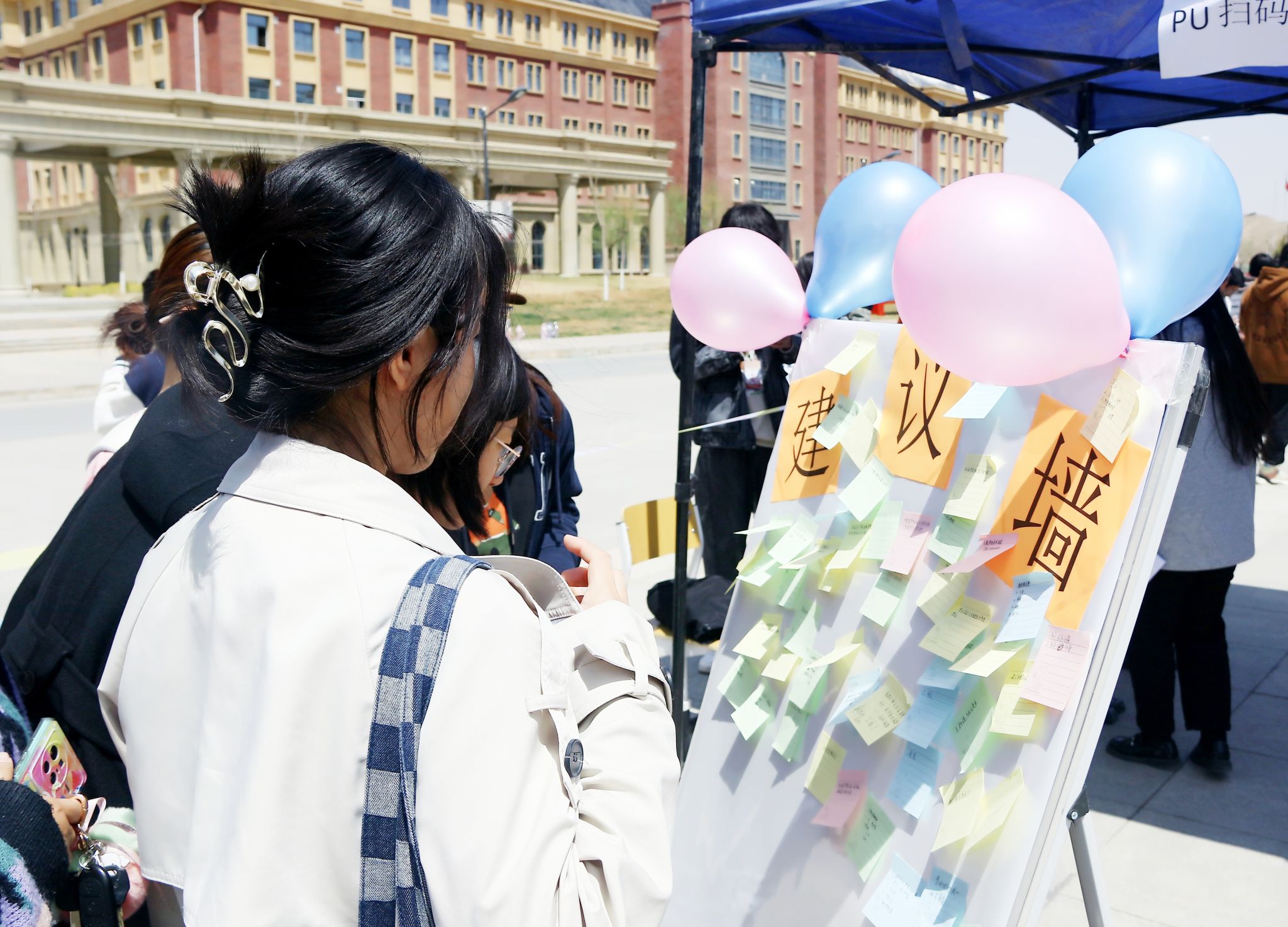 本次活动围绕着“校园禁烟你来谈”“24小时供电你来说”“占座现象好与坏”等近期同学们关注的焦点问题展开,留下建议的同学还将获得学生体验委员会准备的刮刮卡,同时获得学校纪念版U盘和精美小礼品。