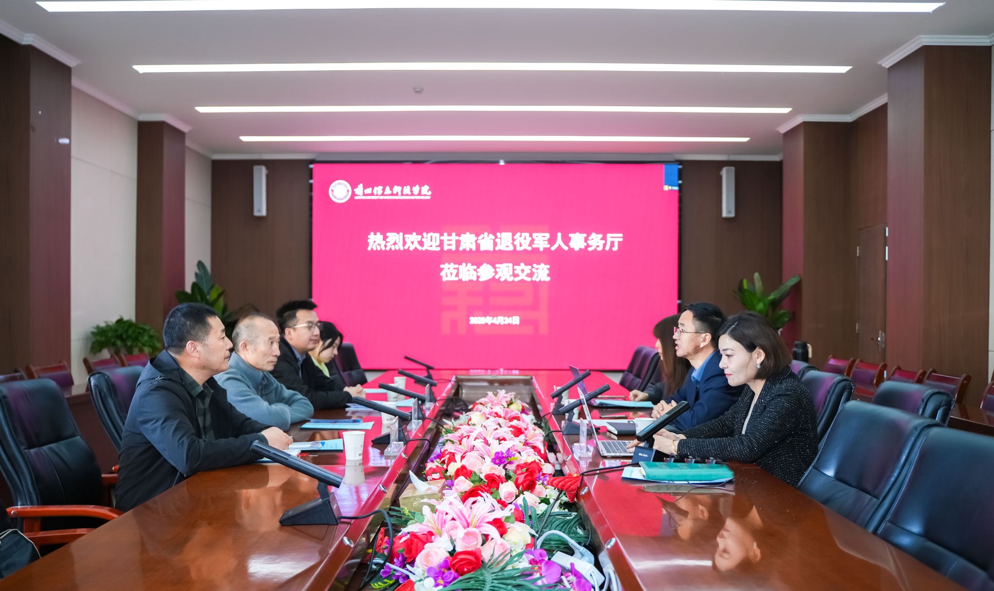 4月24日,beat365英国官方网站与甘肃省退役军人事务厅,围绕深化退役军人培训服务保障、拓宽退役军人就业创业渠道以及挂牌退役军人培训基地等合作内容举行座谈会。甘肃省甘肃省退役军人事务厅就业创业处一级调研员温玉林、beat365英国官方网站副校长朱明敏出席会议,继续教育学院院长罗丽娟及相关人员共同参会。