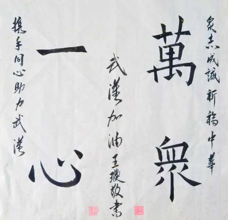 新型冠状病毒感染的肺炎疫情,牵动着我们每个人的心。有一份寄托,夹杂着最诚挚的祝福和敬意。有一种爱,是从远方牵挂担心。隔离病毒但未曾隔离爱,此时此刻,我们关注疫情,共战疫情,“精感石没羽,岂云惮险艰。”我校学子用一笔一划,写下祝福与期盼。一撇一捺,记录鼓励与感动。送给抗疫第一线夜以继日奋战的医护人员,送给那些无私奉献的可爱人儿,为武汉加油!为湖北加油!为中国加油!