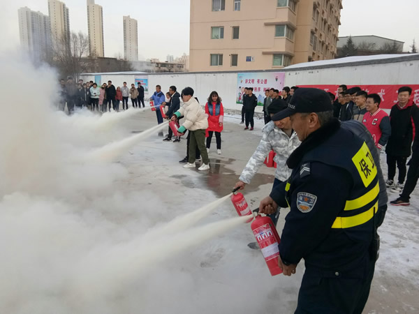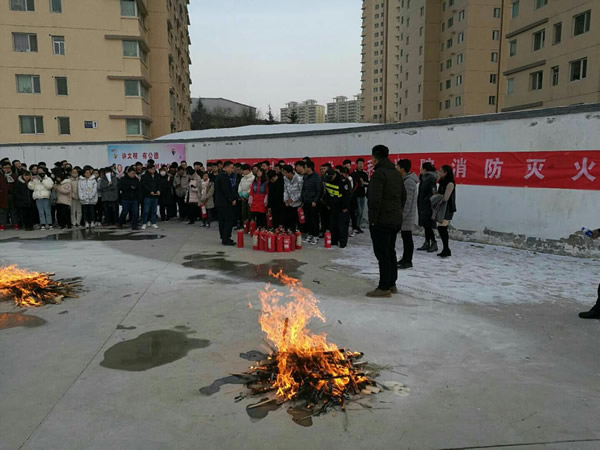 李教官为我们细致讲解了火灾的基本概念和分类,火场逃生基本知识,并现场示范如何正确使用灭火器。他不仅从理论上向大家传授关于消防的各种安全防范知识,而且例举了大量实际生活中的真实案例,教训深刻,发人深省。大家通过他精辟而又生动的讲解不仅学到更多的消防知识,进一步增强了安全防范意识和对突发火灾事故的应变处置能力,也感受到了消防官兵的伟大。培训结束后,保卫处组织老师、学生、经营户在南区篮球场预设好的场地进行实地灭火演练,亲身体验了灭火器的正确操作过程,同时更加深刻的理解了消防安全的重要性。