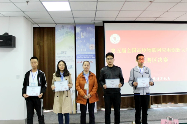 2018年4月15日,我院学生在第五届全国高校物联网应用创新大赛西北赛区决赛中喜获佳绩。此次决赛,我院共有两件作品入围,其中由2015级能源与动力工程1班陈琳等五名同学制作的“跳舞机器人”以第二名的成绩荣获一等奖,并成功晋级全国总决赛;由2015级物联网2班吕归龙等五名同学制作的“太阳能智能温室”荣获三等奖。