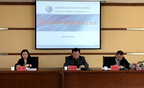 3月9日下午15:00,学院在砺志楼行政办公区5楼多功能报告厅召开2018年春季学期全院教职工大会。院领导及全院教职工参加了大会。大会由副院长谢黎明主持。