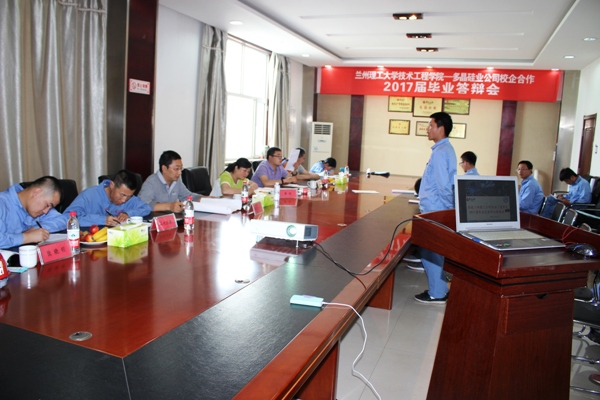 2017年6月11日上午,在鄂尔多斯多晶硅业有限公司进行2017届化学工程与工艺、过程装备与控制工程22名校企联合培养学生毕业设计答辩。答辩组由学院材料与化工工程系化工教研室教师秦瑞、李刚刚、李小东,教务处徐学会,企业张晓明、吴扎拉森担任本次答辩评委。