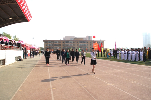 随着激昂澎湃的《运动员进行曲》,本届运动会拉开序幕。国旗、院旗、会旗、会徽相继入场,彩旗方阵、表演方阵阔步走过主席台接受领导和师生的检阅,矫健的步伐展现出我院学生的朝气蓬勃和飒爽英姿。学生方阵和教职工方阵,身着整齐划一的服装,迈着坚定有力的步伐,口喊高亢嘹亮的口号一一走过主席台。