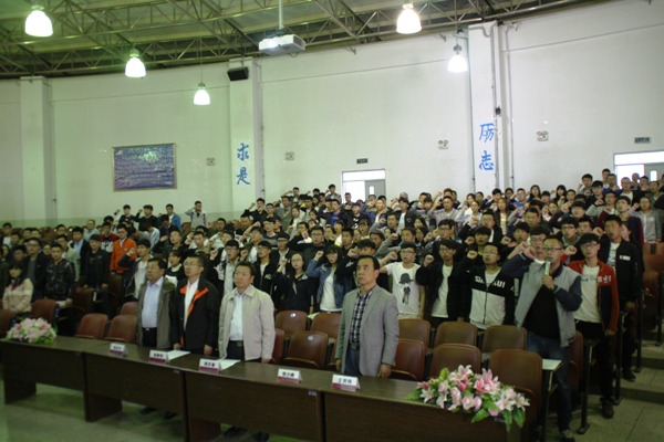 为全面贯彻落实党的十八届六中全会和全国高校思想政治工作会议精神,扎实推进学院“两学一做”学习教育,进一步强化党员责任意识,更好地发挥党员模范作用,4月25日,学院党委在砺志楼E区201教室举行党员示范岗和党员宿舍创建活动授牌及新党员入党宣誓仪式。学院党委书记周怀春、全体党委委员以及各党支部书记和全体教工党员、学生党员参加了会议。会议由学院党群工作部部长张少峰主持。