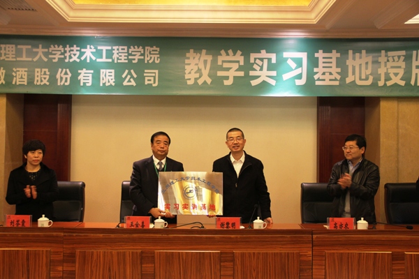2015年11月12日上午,学院和金徽酒股份有限公司的教学实习就业基地协议签订和授牌仪式在金徽酒股份有限公司隆重举行。学院副院长谢黎明、招生就业处处长高亦农及学院相关代表参加了仪式。学院副院长谢黎明代表学院与金徽酒股份有限公司党委书记王全喜签订了基地协议。