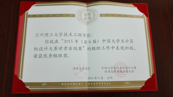 日前,甘肃省教育厅公布了“2015年全国大学生计算机设计大赛甘肃省级赛获奖名单”,我院学生黄鹏天、马生璞、刘璇的作品《爱伙拼网页搭伙拼餐系统》获软件应用与开发类一等奖;学生刘润泽、陈东起、罗浩的作品《小魔王概念礼购平台》获软件应用与开发类二等奖;学生牛建睿、汪瑞山的作品《甘肃洮砚公司首页设计》获软件应用与开发类三等奖;同时我院获得甘肃省级赛优秀组织奖,以上奖项由甘肃省教育厅和中国大学生计算机设计大赛甘肃省级赛组织委员会联合颁发。