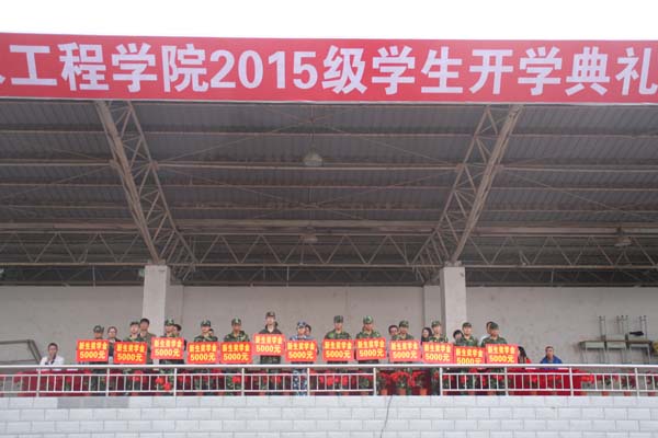 庄严的升国旗奏国歌、升院旗奏校歌仪式后,学院党委书记周怀春宣读《关于表彰兰州理工大学技术工程学院2015年“新生奖学金”获奖个人的决定》。随后,各位领导为受表彰学生颁奖。