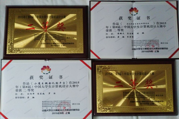 8月5日至9日,第八届中国大学生计算机设计大赛软件应用与开发类决赛在上海大学宝山校区落下帷幕。学院工学二部龚翔老师指导的作品《小魔王概念礼购平台》(学生:刘润泽 陈东起 罗浩)、《爱伙拼网页搭伙拼餐系统》(学生:黄鹏天 马生璞 刘璇 )获软件应用与开发类二等奖;同时我院是甘肃省该项目组唯一获奖院校,通过本次竞赛为学院赢得了荣誉,体现了学院学生较高的计算机水平。