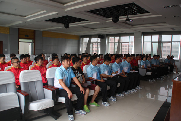 2015年7月14日上午10点,学院在砺志楼A区5楼多功能报告厅隆重举行“兰州理工大学技术工程学院参加甘肃省第三届大运会代表团出征仪式”,学院院长赵万勇、学院党委书记兼副院长周怀春、学院副院长谢黎明、院长助理兼财务处处长谭蓉、人文体育部主任赵迎新以及体育教研室全体教师、全体教练员、运动员参加了此次出征仪式。出征仪式由赵迎新主任主持。仪式上副院长、代表团副团长谢黎明通报兰州理工大学技术工程学院组团方案,领队刘曼冬老师就我院组队、备战情况进行通报,魏立庭老师和杨乐智同学分别代表教练员、运动员发言。学院院长、代表团团长赵万勇做最后总结讲话,对代表团予以新的目标和鼓励,最后全体参会人员在学院励志楼前合影留念。