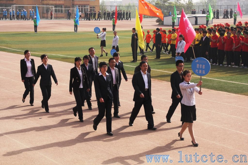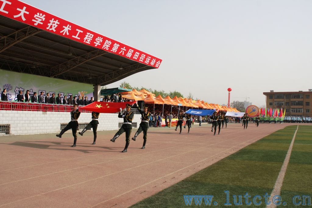 伴随着嘹亮的运动员进行曲,国旗、院旗、会旗、会徽相继入场,彩旗方阵、表演方阵、裁判员方阵以及各系学生代表队方阵和教师方阵迈着整齐的步伐、喊着响亮的口号、精神饱满地从主席台前走过,接受领导们的检阅。
