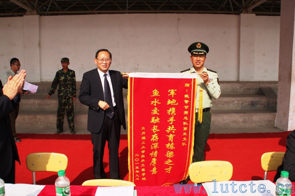 学院院长王瑞祥向武警甘肃总队第三支队赠送锦旗