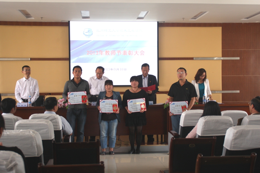 大会上,学院副院长谢黎明宣读了《关于表彰学院2013年(首届)“教学新秀”的决定》。学院院长助理兼财务处处长谭蓉宣读了《关于表彰2013年学院“三育人奖”先进个人的决定》。随后,各位院领导为获奖教职工颁奖。